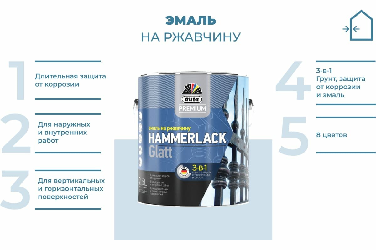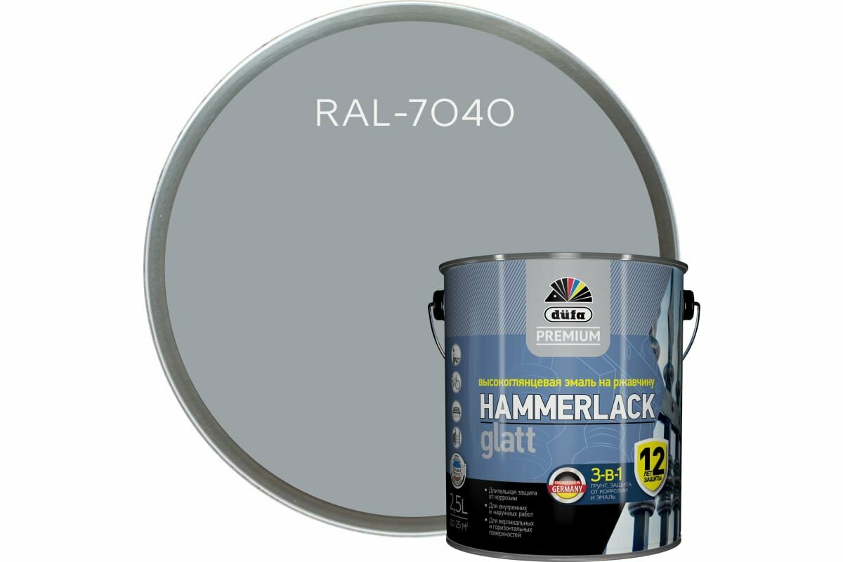 На сегодняшний день товар «эмаль по ржавчине hammerlack серый ral-7040 гладкая 25л Dufa» можно купить с кешбеком в 1 магазине: Яндекс.Маркет