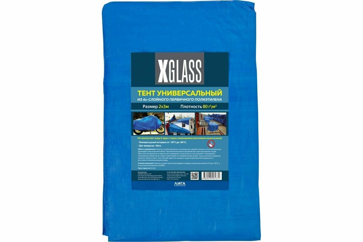тент полиэтиленовый 4-х слойный ламинированный x-glass 2х3 м 80 гр/м2