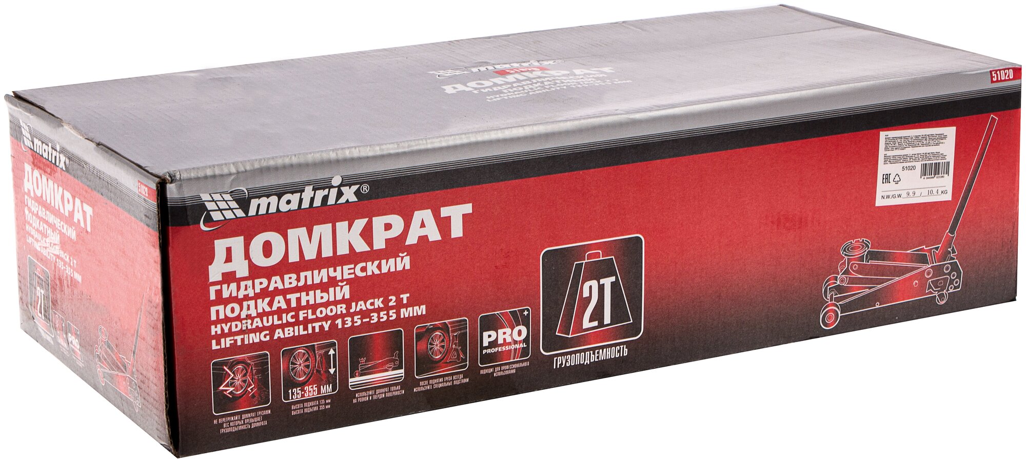 - Гидравлический подкатной домкрат Matrix MASTER с клапаном безопасности предназначен для подъема груза массой до 2 тонн.
