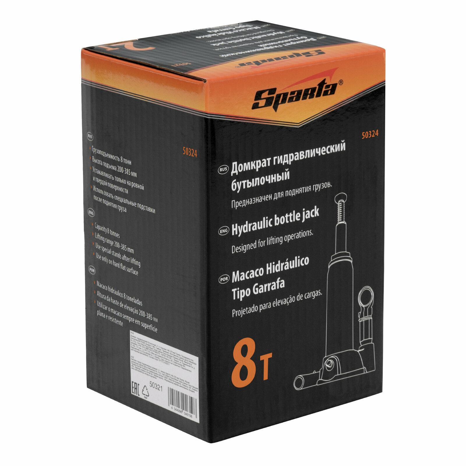 Гидравлический домкрат SPARTA предназначен для подъема груза массой до 8 тонн. Домкрат является незаменимым инструментом в автосервисе, часто используется при проведении ремонтно-строительных работ. Минимальная высота подхвата домкрата SPARTA составляет 20 см. Максимальная высота, на которую домкрат может поднять груз, составляет 38,5 см. Этой высоты достаточно для установки жесткой опоры под поднятый груз и проведения ремонтных работ.