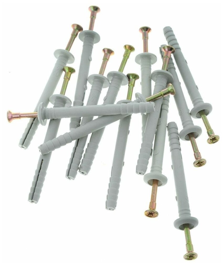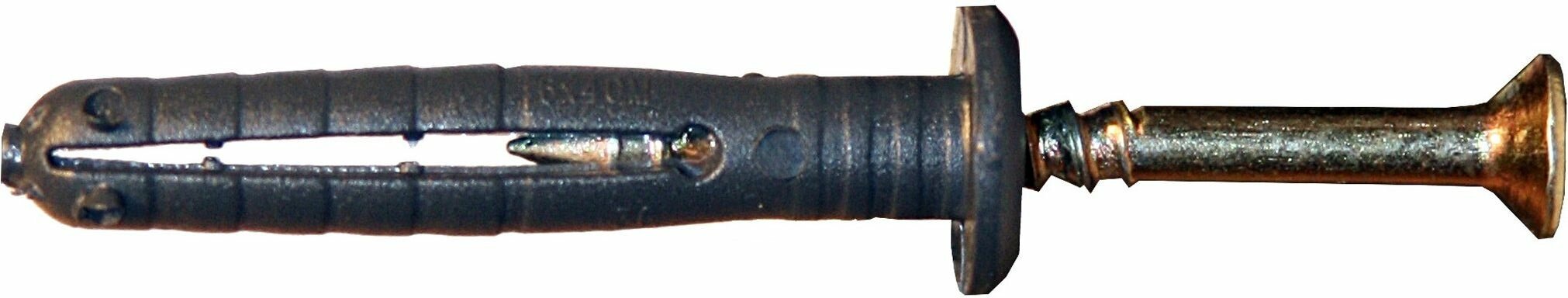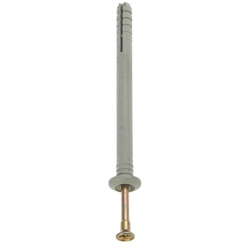 Область применения: сквозной монтаж кронштейнов, дверных коробок, оконных рам, кабельных каналов, обрешетки, гипсокартонных листов (ГКЛ), гипсоволокнистых листов (ГКЛ) и т.д. Материал применения: бетон, природный камень, полнотелый кирпич, газобетон. Материал: полипропилен, углеродистая сталь с цинковым покрытием. Особенности: для установки необходимо предварительно просверлить отверстие. Прочность крепежа достигается расклиниванием дюбеля в отверстии гвоздем в момент удара молотком. С помощью крестообразного шлица на головке гвоздя можно легко ослабить или усилить крепеж, демонтировать его. Более надежное крепление благодаря большой площади соприкосновения с прикрепляемой деталью.