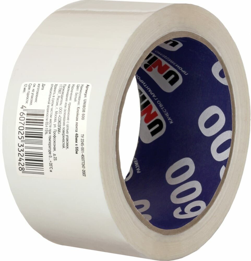 скотч упаковочный 48мм*66м unibob600 белый 28717