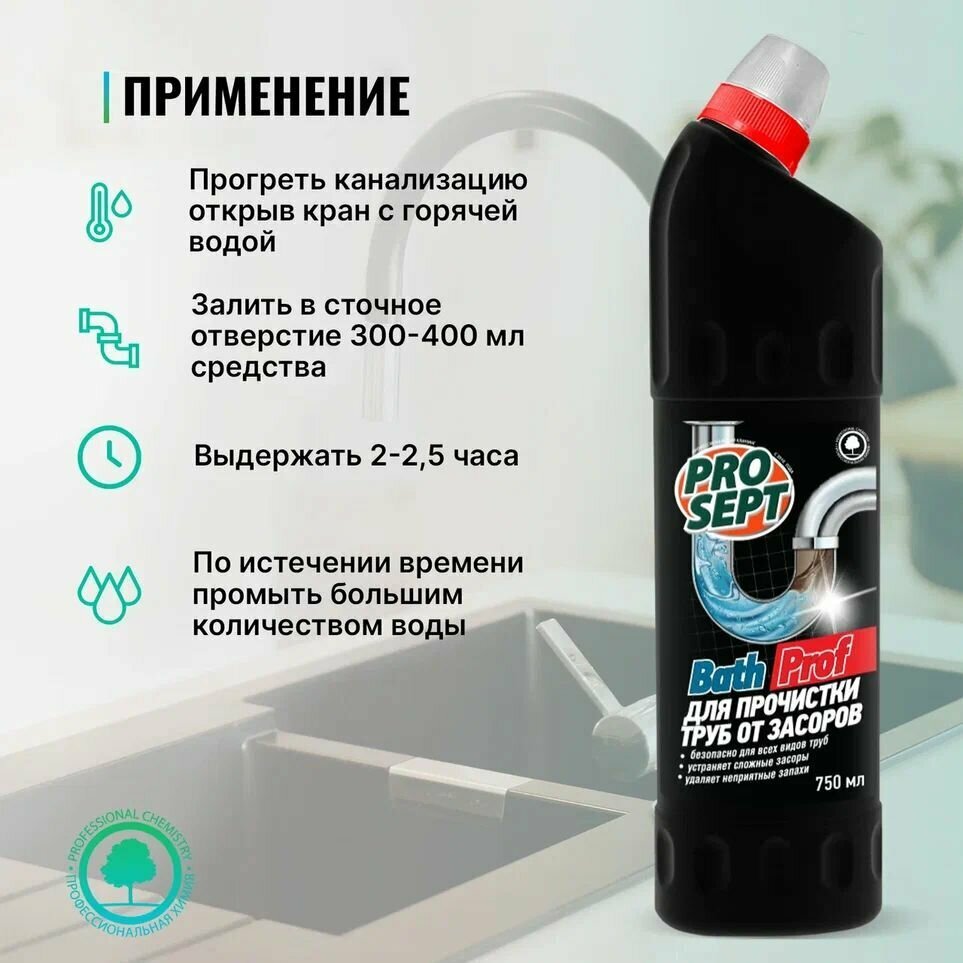 средство для устранения засоров в трубах 075л bathkrot/bathprof концентрат 111-075 Prosept
