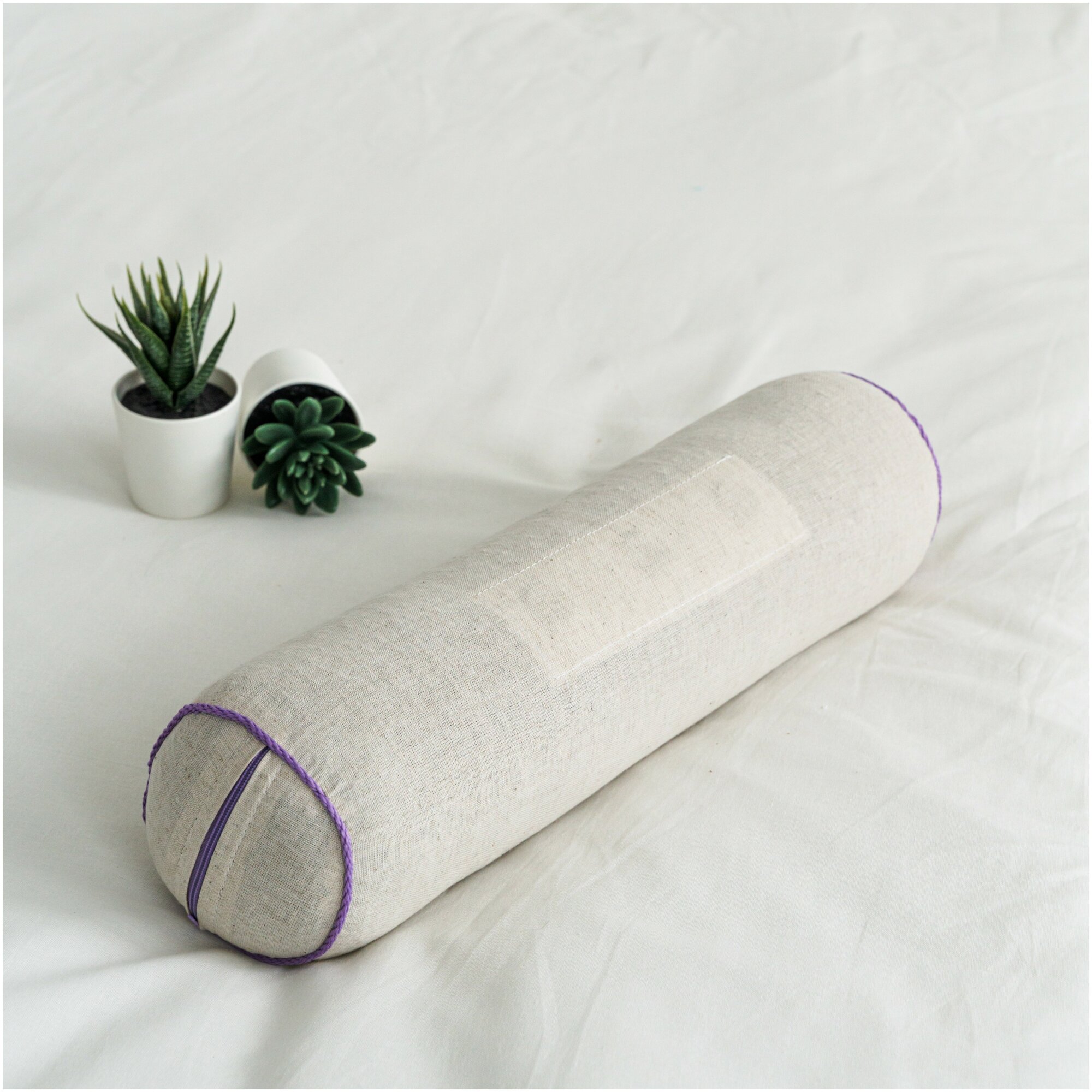 Удобный валик из натуральных материалов с магнитами - отличное средство для снятия нервного напряжения и восстановления иммунитета. Применение валика снимает нагрузку с шейного отдела позвоночника, предотвращая возникновение остеохондроза, способствует профилактике головных и поясничных болей. Льняной чехол абсолютно гипоаллергенен, обладает хорошими гигиеническими свойствами. Наполнитель из натуральной лузги гречихи придает умеренную жесткость валику и обладает микромассажным свойством, улучшающим кровообращение. Наличие магнитов усиливают профилактические свойства валика, помогает восстановить энергетический баланс, при спазмах и отеках нижних конечностей подушка-валик послужит замечательным профилактическим средством варикозного расширения вен. Аромат лаванды обладает успокаивающим эфф