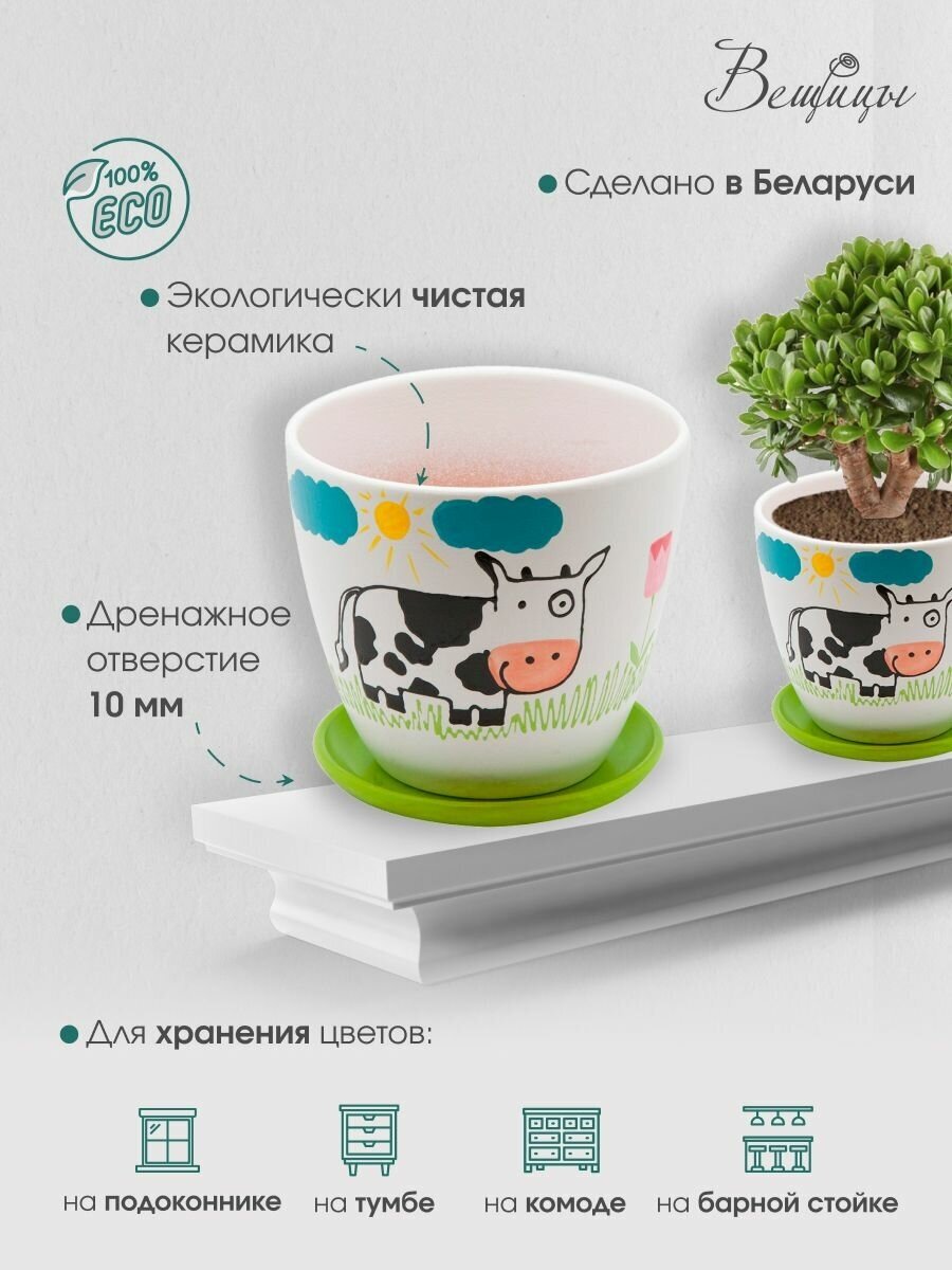 керамический горшок детский с подставкой "корова" 14л. д148 ш148 в130 Engard