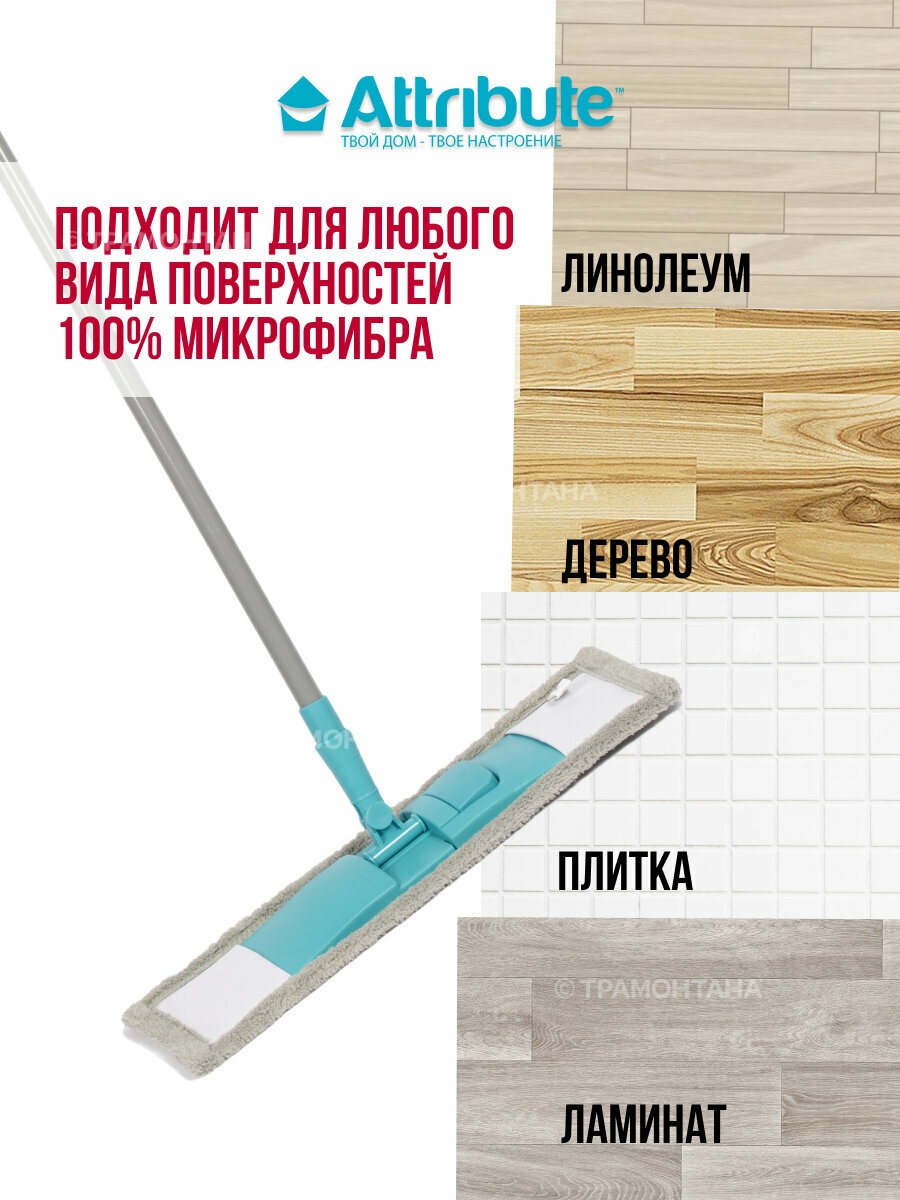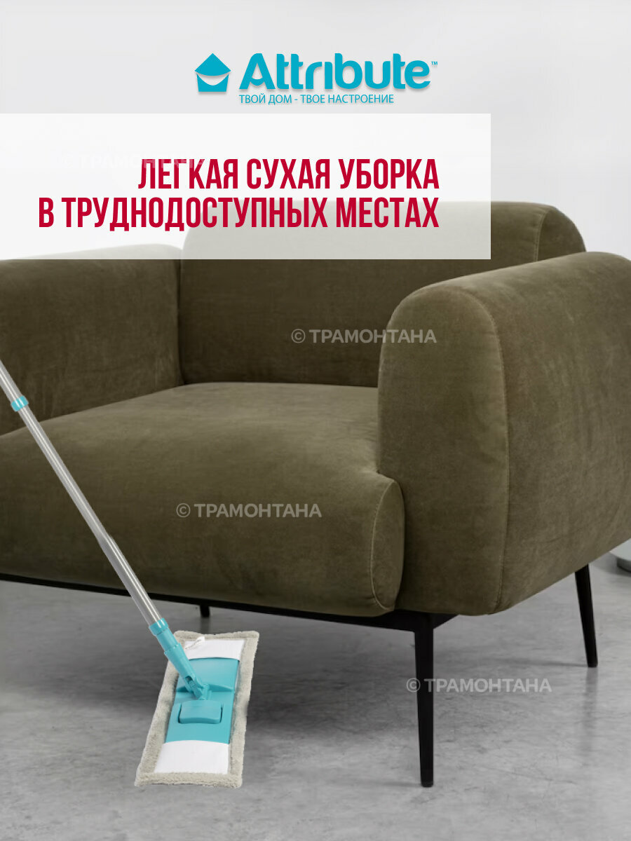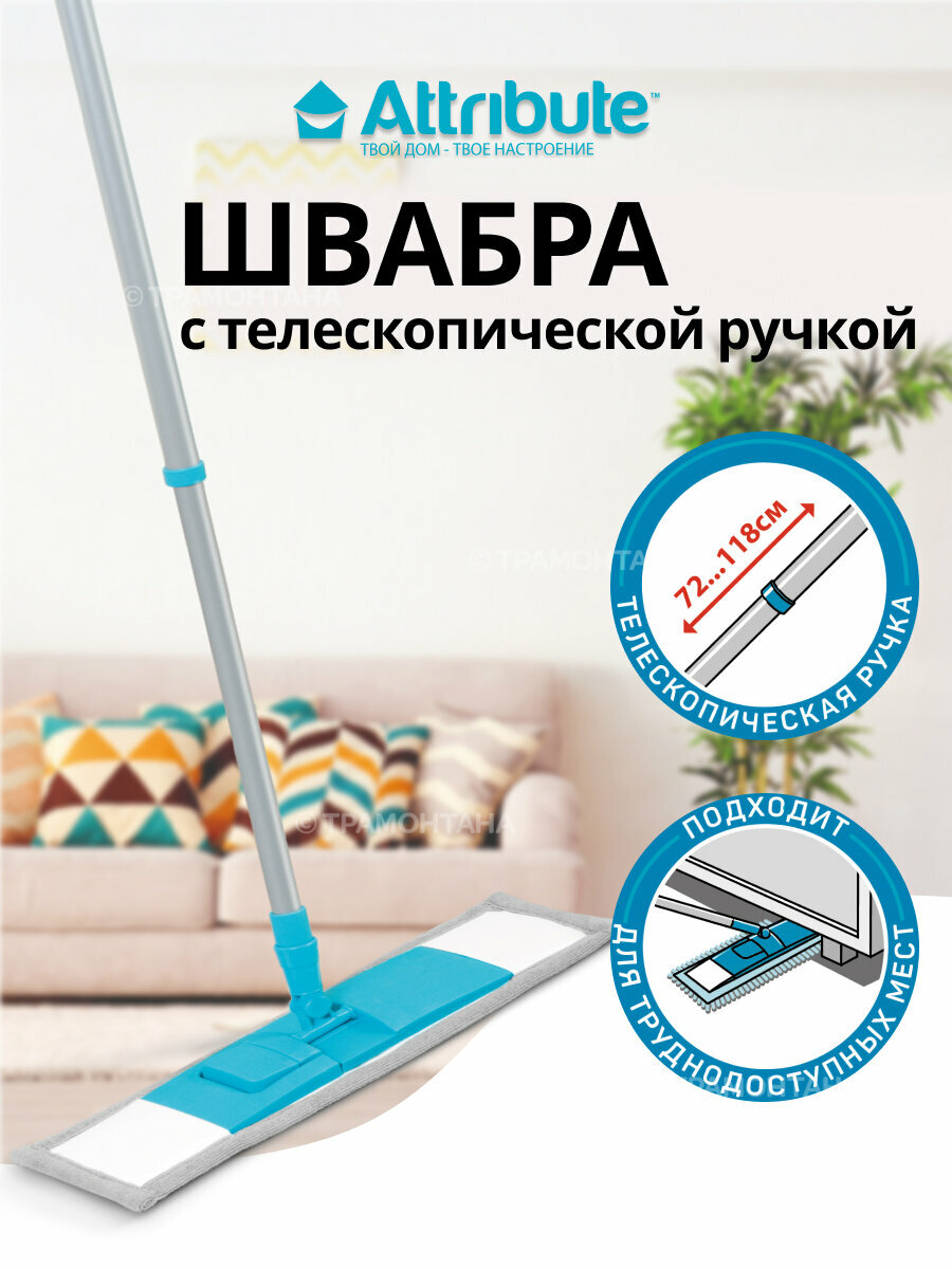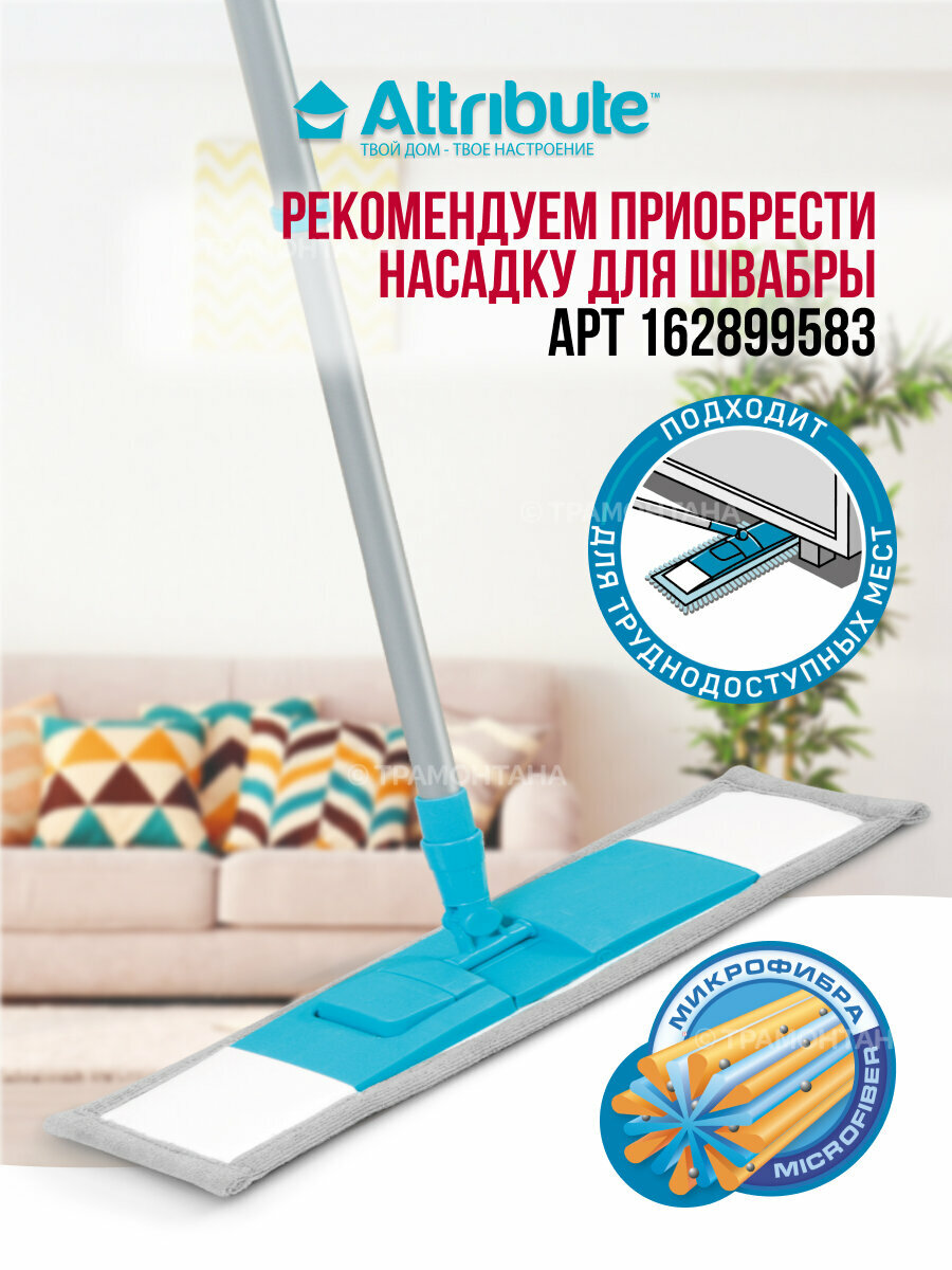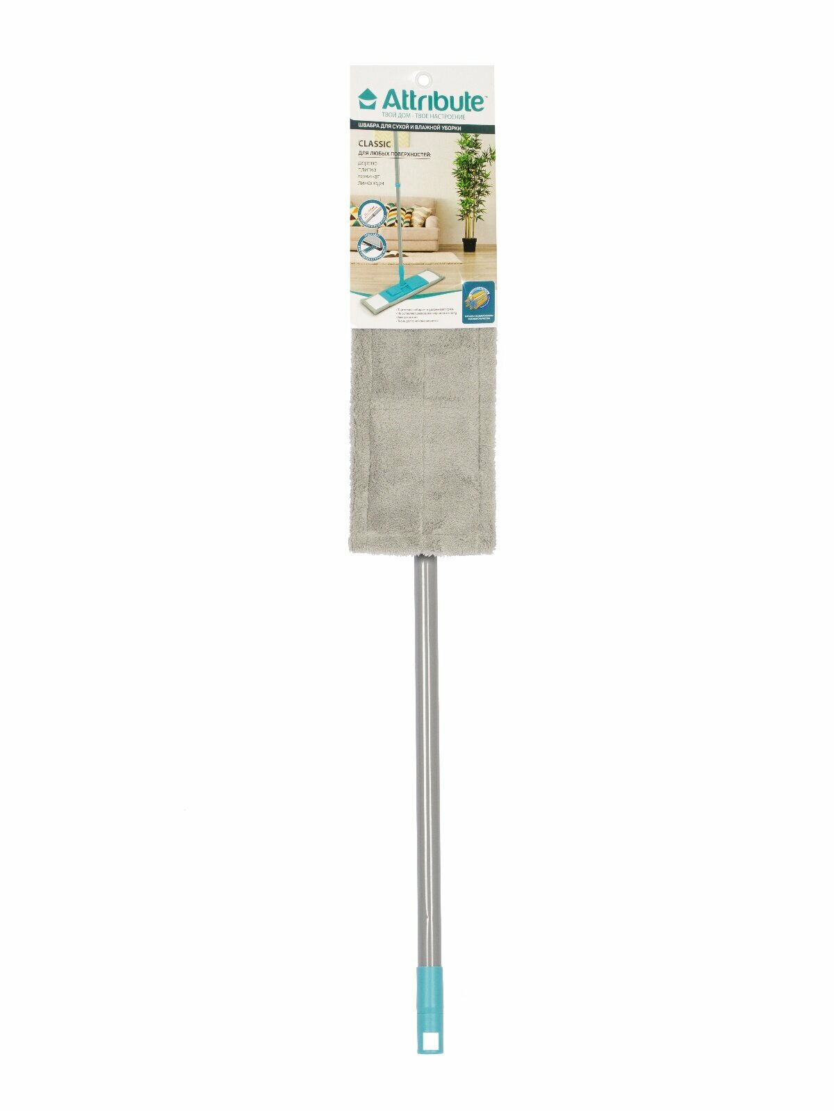 Швабра CLASSIC торговой марки Attribute создана для создания чистоты в Вашем доме. Насадка из микрофибры обеспечивает прочность изделия и устойчивость к износу в процессе использования. Насадка из микрофибры эффективно собирает пыль, грязь, шерсть имелкий мусор. Синтетические ткани хорошо впитывают и отдают влагу, поэтому отжимаются досуха, что важно при использовании на поверхностях, которые не рекомендуется мочить. (ламинат, дерево, паркет). Подвижная ручка делает швабру компактной и легко управляемой, что позволяет провести уборку труднодоступных мест (например, под мебелью). Конструкция швабры подразумевает использование любых насадок, подходящих по размеру.