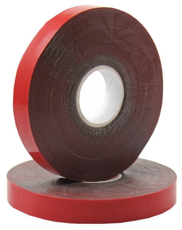 скотч двухсторонний красного цвета на серой основе 6мм 5м rexant