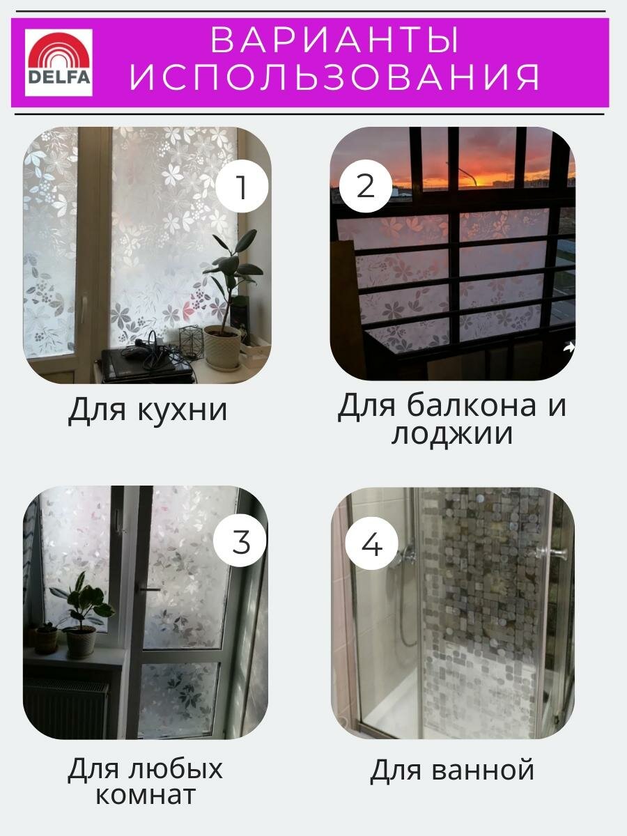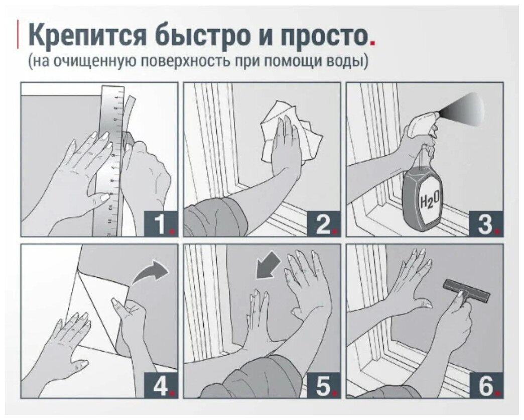 Самоклеящаяся пленка для защиты окон без использования штор от проникновения яркого света, для придания стильного оформления, а также для декоративной отделки или других практических целей. Изготовлена из материала с эффектом прилипания, крепится легко и быстро за счет статических сил, без использования клея на очищенную поверхность при помощи воды, при этом возможна корректировка. Можно использовать в помещениях с повышенной влажностью.