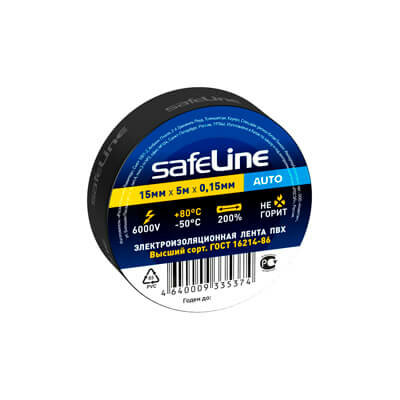 изолента пвх 15мм*5м*015мм черный safeline auto