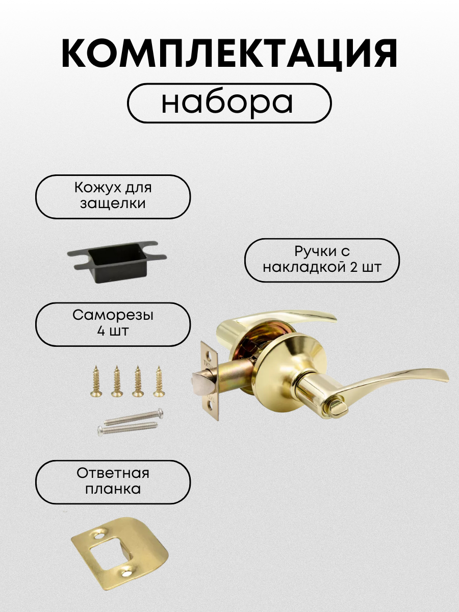 Комплект дверных ручек титан с защелкой (фиксатор, без ключей) - полноценное решение для комплектации межкомнатных дверей (от 35 до 45 мм толщина полотна), диаметр розетки стандартный - 65 мм. С одной стороны фиксатор, с другой стороны аварийный паз (открывается ножом, отверткой плоской и любым другим тонким предметом). Дверные ручки с замком универсальные, подходят на левые и правые двери, можно менять стороны ручки при установке. Ручка дверная межкомнатная имеет высокий ресурс работы: более 300 000 рабочих циклов. Бэксет (удаление ключевого отверстия) защелки регулируется - 60/70 мм. Межкомнатные ручки выполнены из легких современных сплавов, покрыты гальваническим способом в 5 слоев. Данный метод покрытия предотвращает коррозию и защищает от воздействия влаги, поэтому ручки титан можно использовать в помещениях с высокой влажностью (например, ванные и душевые комнаты). Материал изготовления: основание из стали, ручки из сплава ЦАМ (сплав цинка, алюминия, меди). Плавная работа пружины и бесшумный механизм гарантирует качественное открывание и закрывание двери. Гарантия 1 год на весь ассортимент дверных ручек титан.