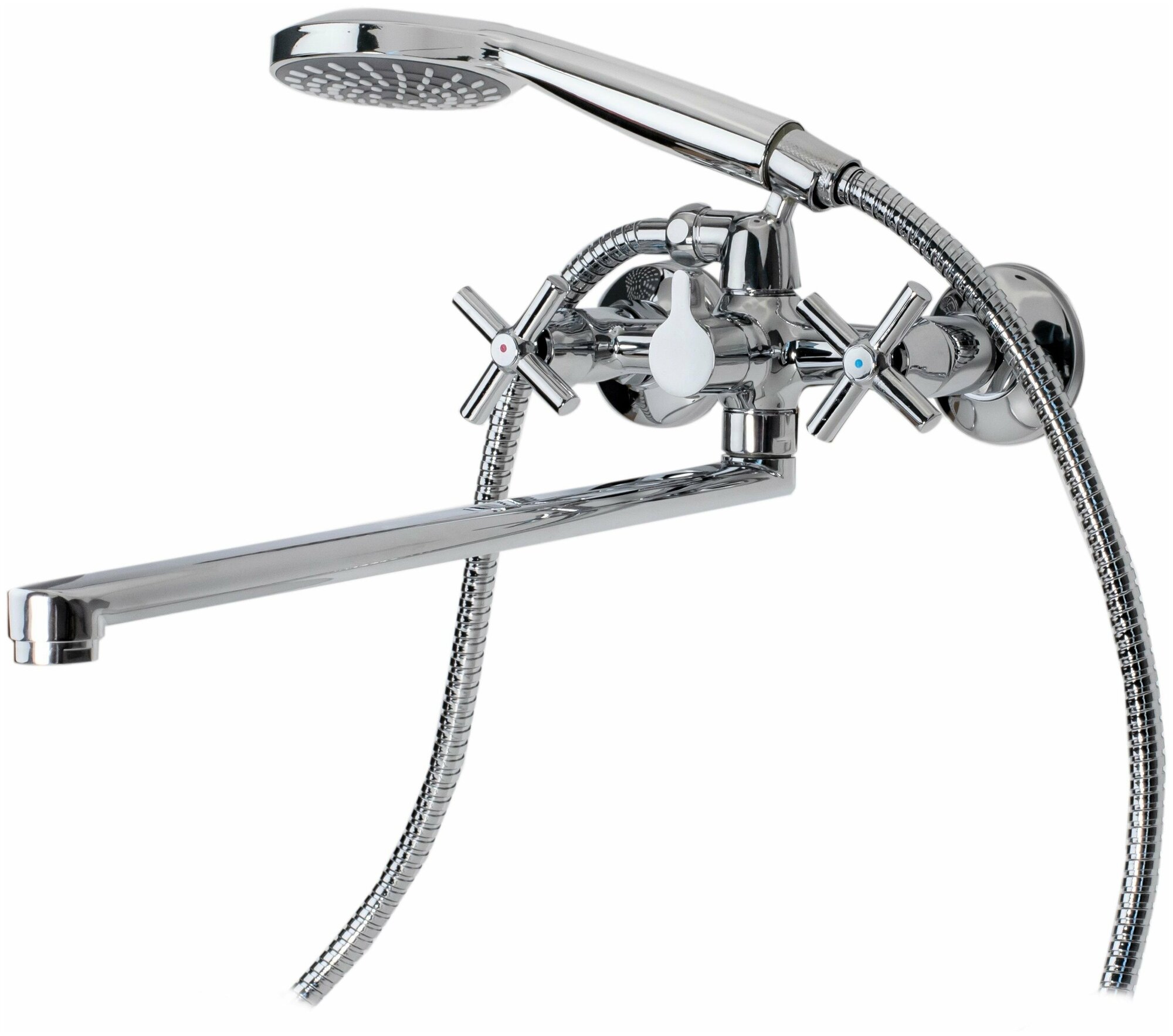Корпус: латунь кат.A Ручки: с защитой от нагревания Излив: поворотный, 350мм Кран-буксы: универсальные ESKO, ход 180 градусов Переключатель: механический(керамика) Комплектация: эксцентрики, отражатели, шланг душевой (в мет. оплетке - 150см.),лейка душевая(1 режим), держатель латунный на теле смесителя