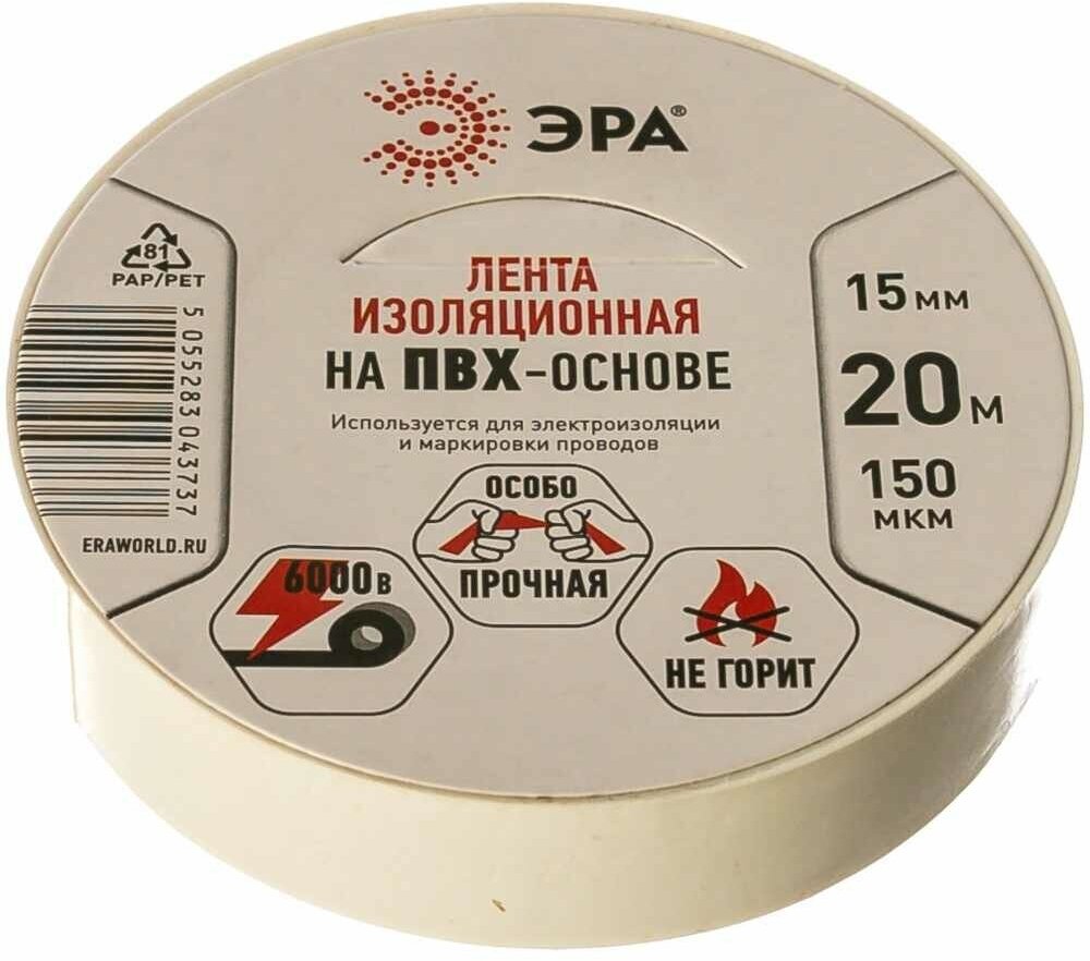 ЭРА C0036546 ПВХ-изолента 15ммх20м белая [043737]