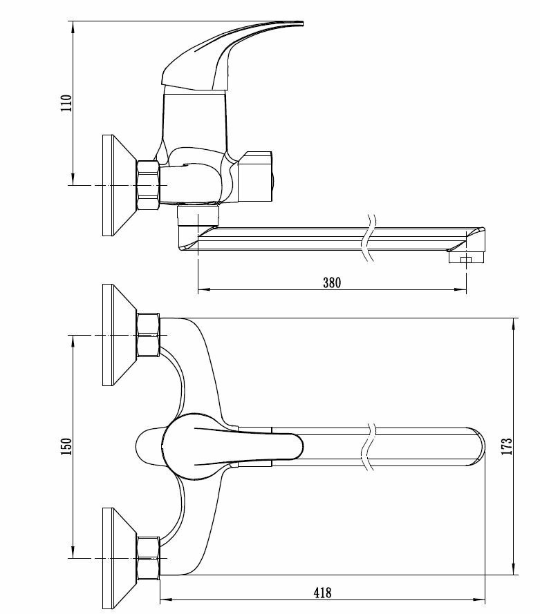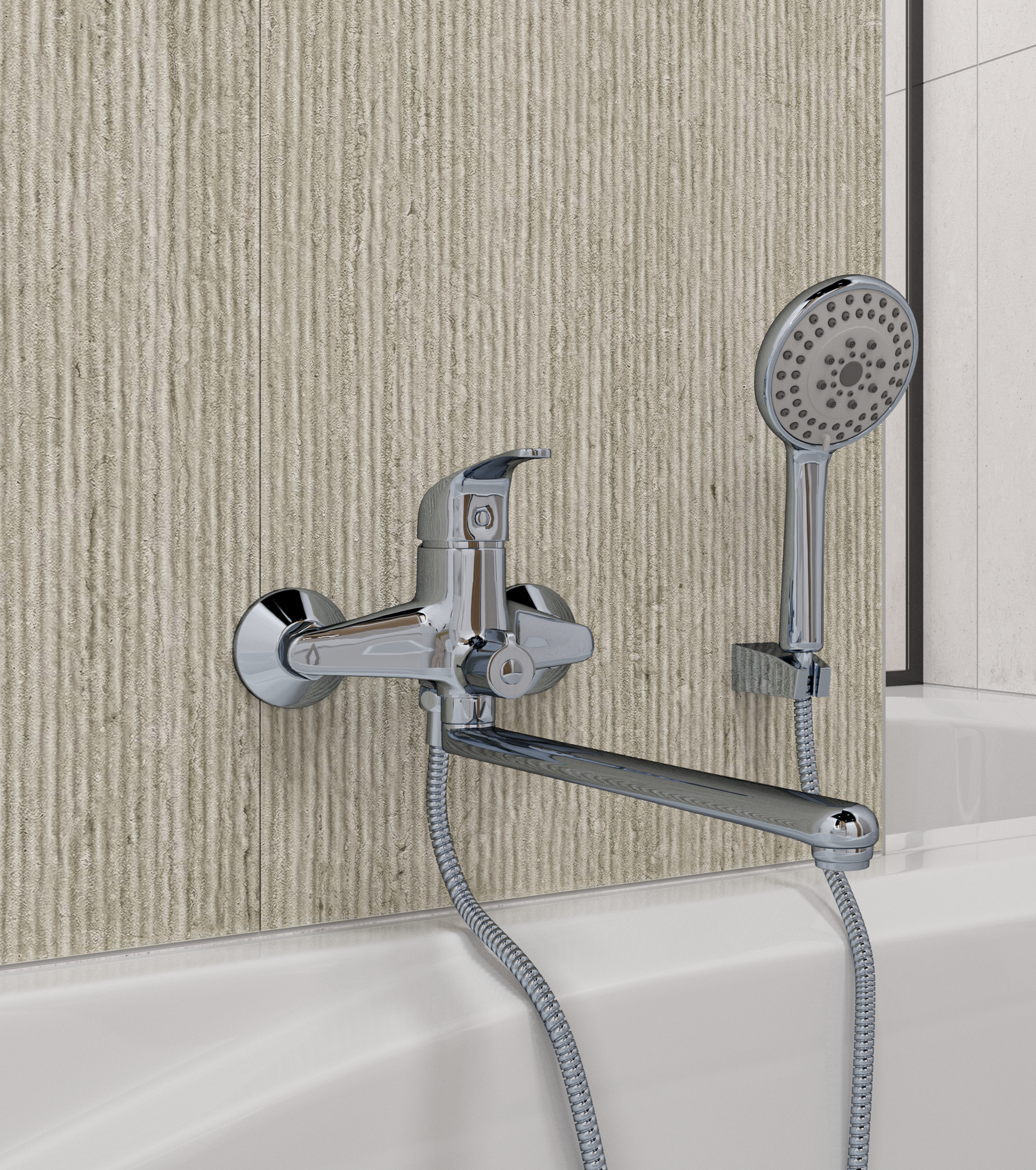 Корпус: латунь кат.A Излив: поворотный, 37,5см Картридж: универсальный, 35мм Переключатель: механический(керамика) Комплектация: эксцентрики, отражатели, шланг душевой (металл - 150см.), лейка душевая, настенный держатель для лейки