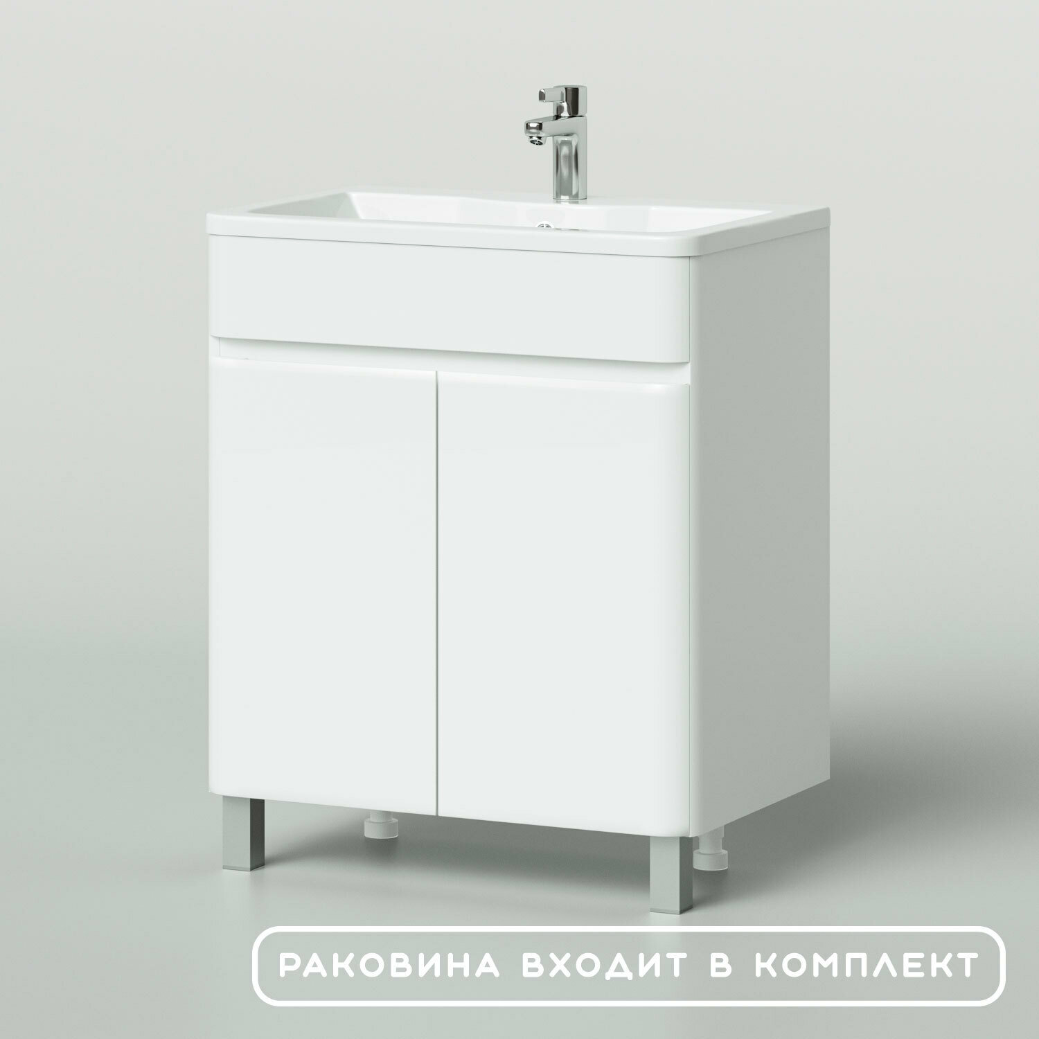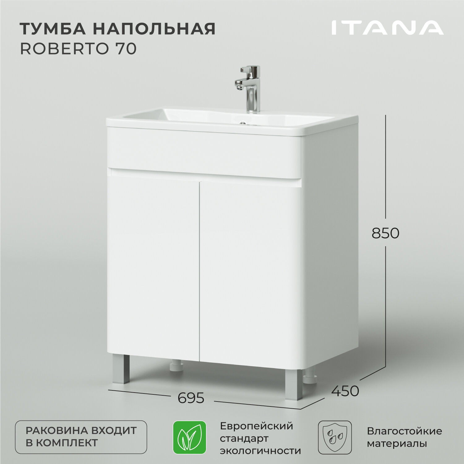 тумба с раковиной напольная итана roberto 60 600х455х850 (белый глянец)