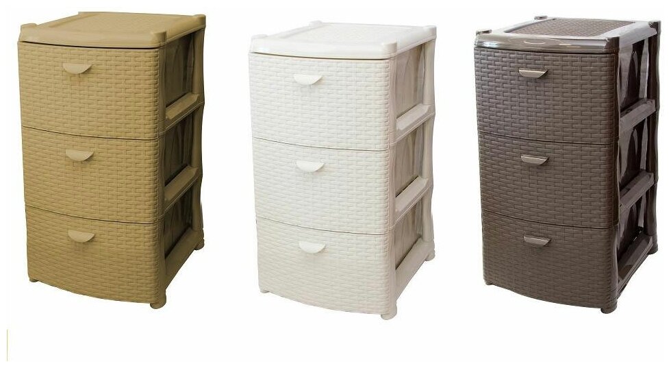 Комод пластиковый выполнен под плетение, один из самых популярных комодов из пластмасс с выдвижными крепкими ящиками. Комод Плетенка компактен, его можно расположить в любом удобном месте а вместительность комода придется как нельзя, кстати.