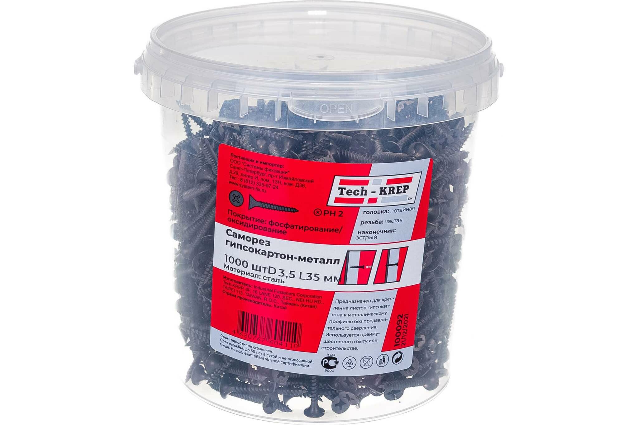 Тип товара: Саморезы черные гипсокартон, металл