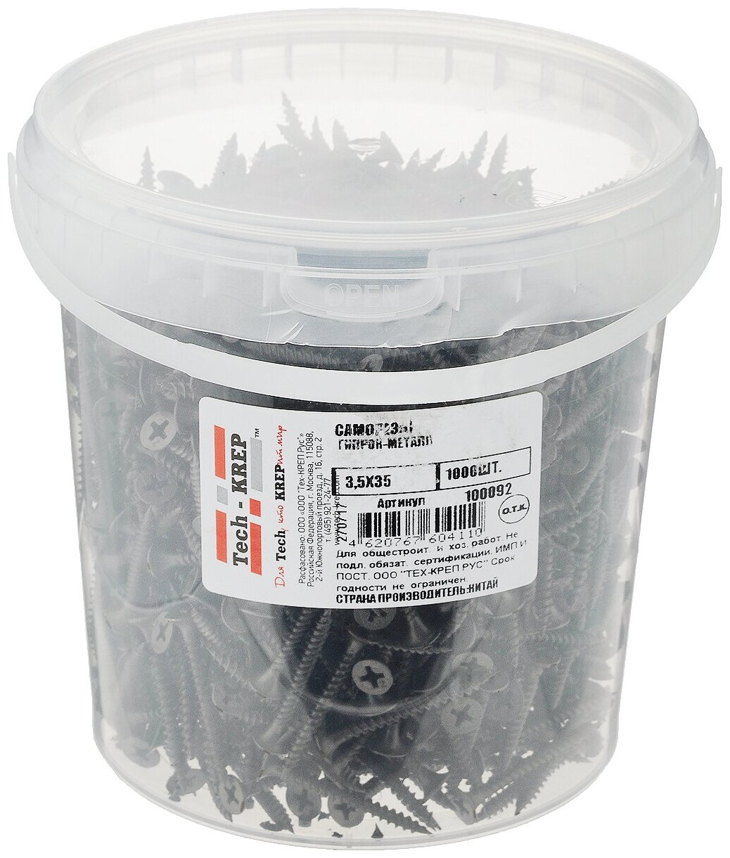 Саморезы черные гипсокартон, металл ТЕХ-КРЕП »