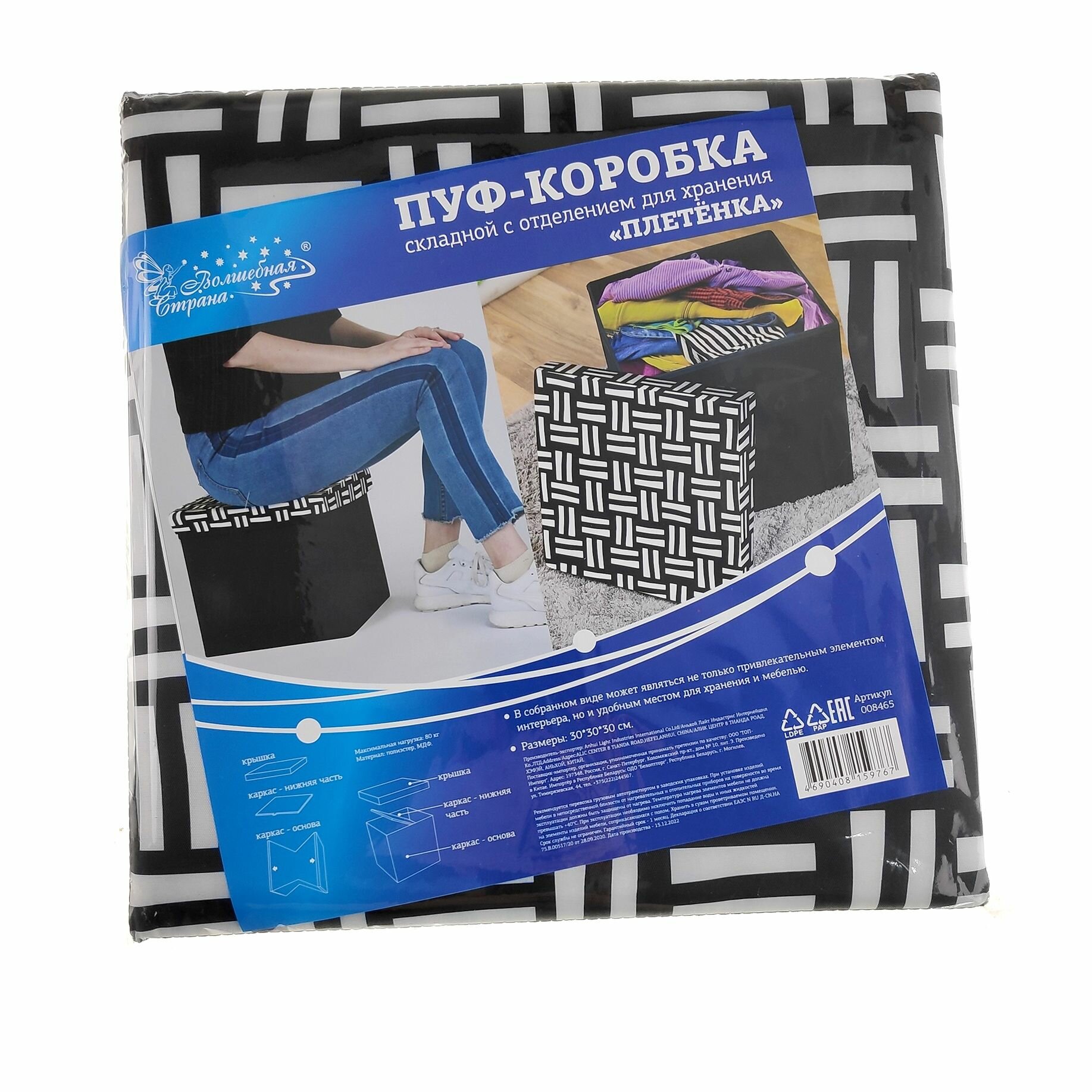 пуф складной с отделением для хранения 30*30*30см волшебная страна плетенка черно-белый 008465