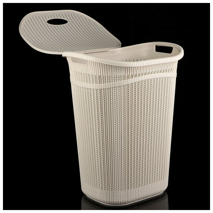 Отверстия в корзине обеспечивают циркуляцию воздуха.Гладкая внутренняя поверхность не поцарапает даже самые нежные ткани. Текстура поверхности напоминает вязаное изделие.Такая корзина будет стильно смотреться в любой ванной комнате.