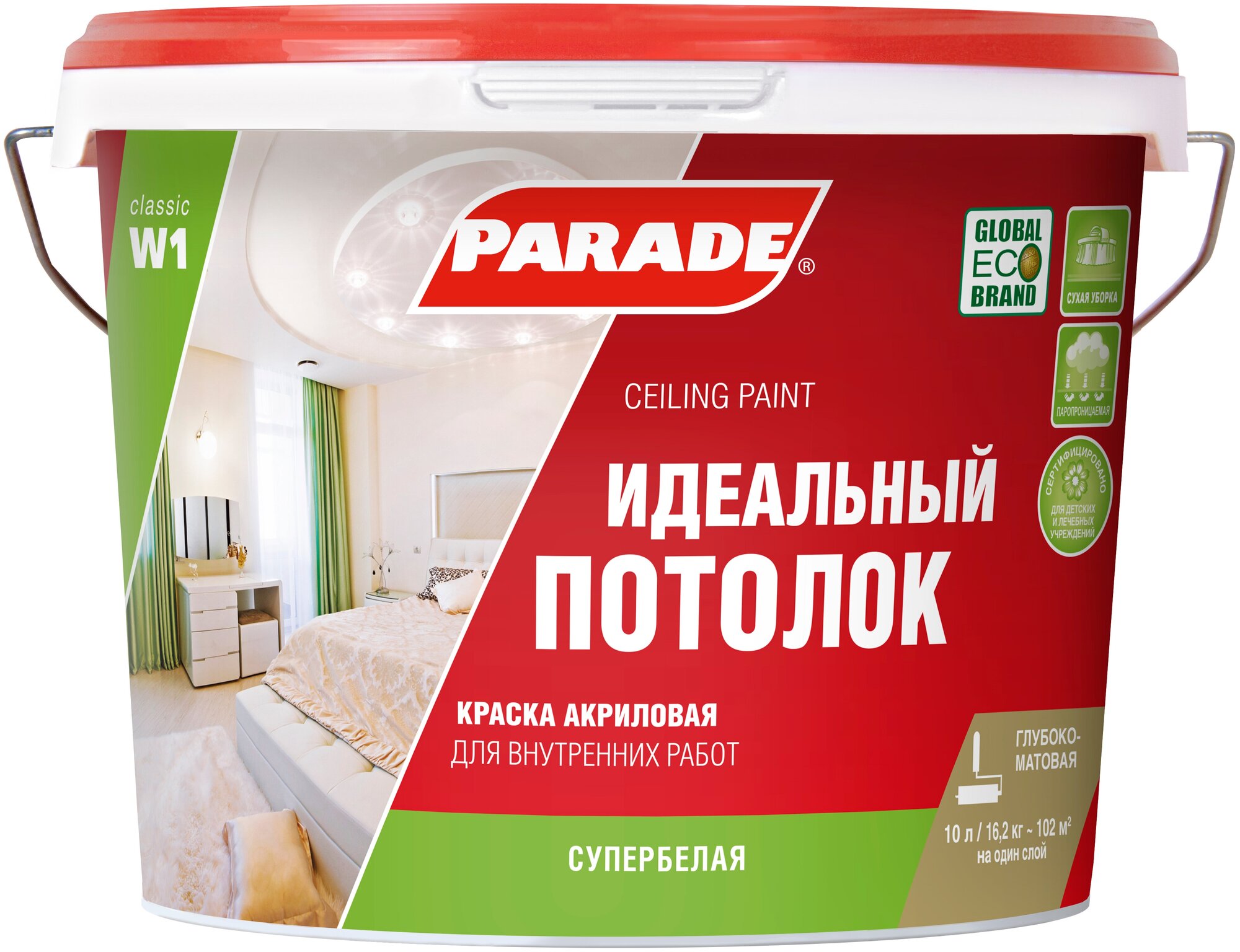 краска parade w1 идеальный потолок база a белая мат 10л Парад