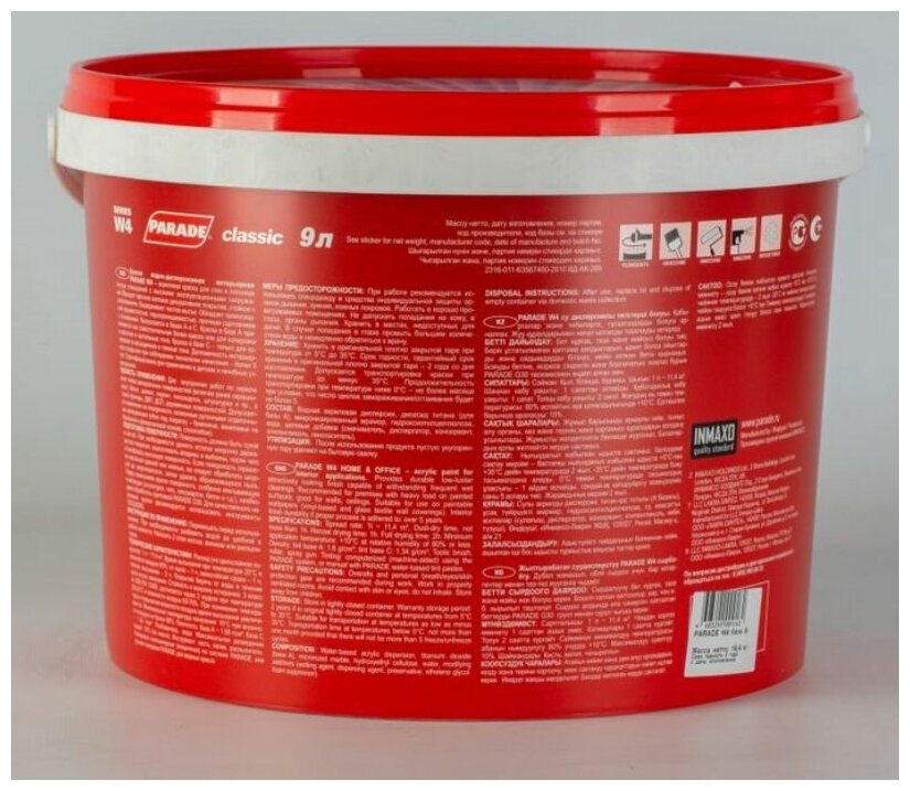 краска parade w4 дом & офис база a белая мат 25л Парад