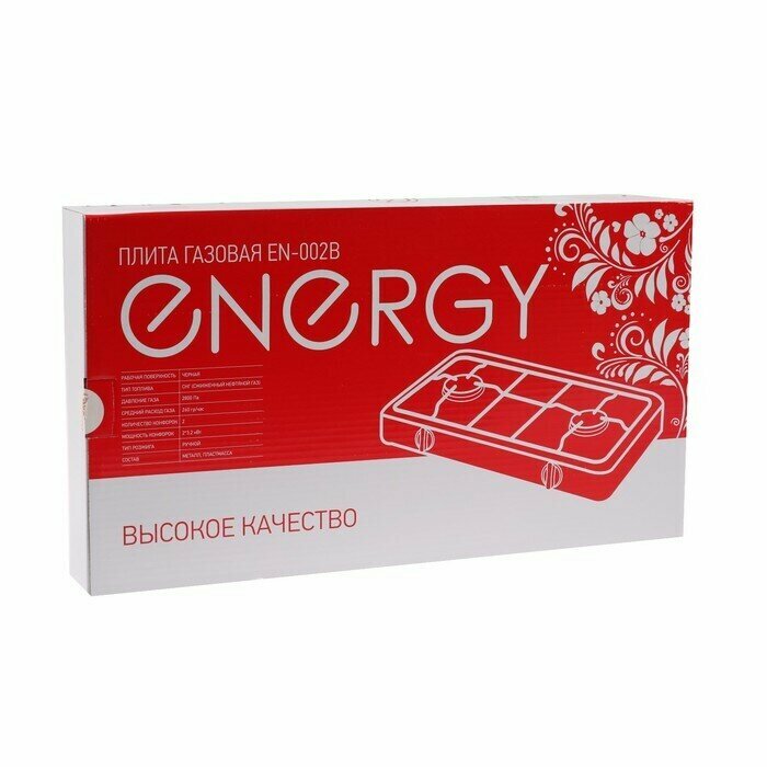 Плита Energy EN-002B предназначена для использования на даче и совместима только с баллонным сжиженным газом. EN-002B оснащена двумя газовыми конфорками для разогрева и приготовления различных блюд.