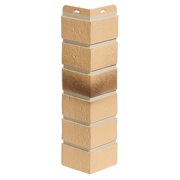 Благородный светлый оттенокИспользуйте внешние углы с фактурой золотистого лицевого кирпича для завершения облицовки фасада или его отдельных архитектурных элементов. Светлый оттенок и нейтральные светло-серые швы делают стык панели и угла практически незаметным.