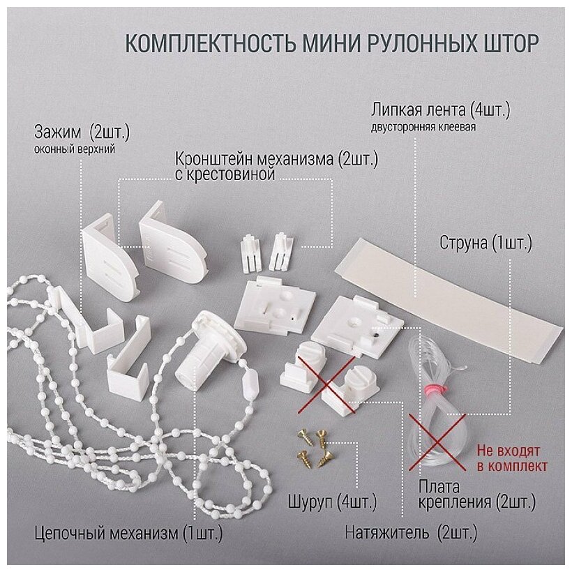 Наличие специальных зажимов обеспечивает быстрый и простой монтаж шторы без сверления отверстий в стеклопакете. Существует также возможность стандартного крепления с помощью саморезов. Дополнительно в комплект входит соединитель «защита детей».