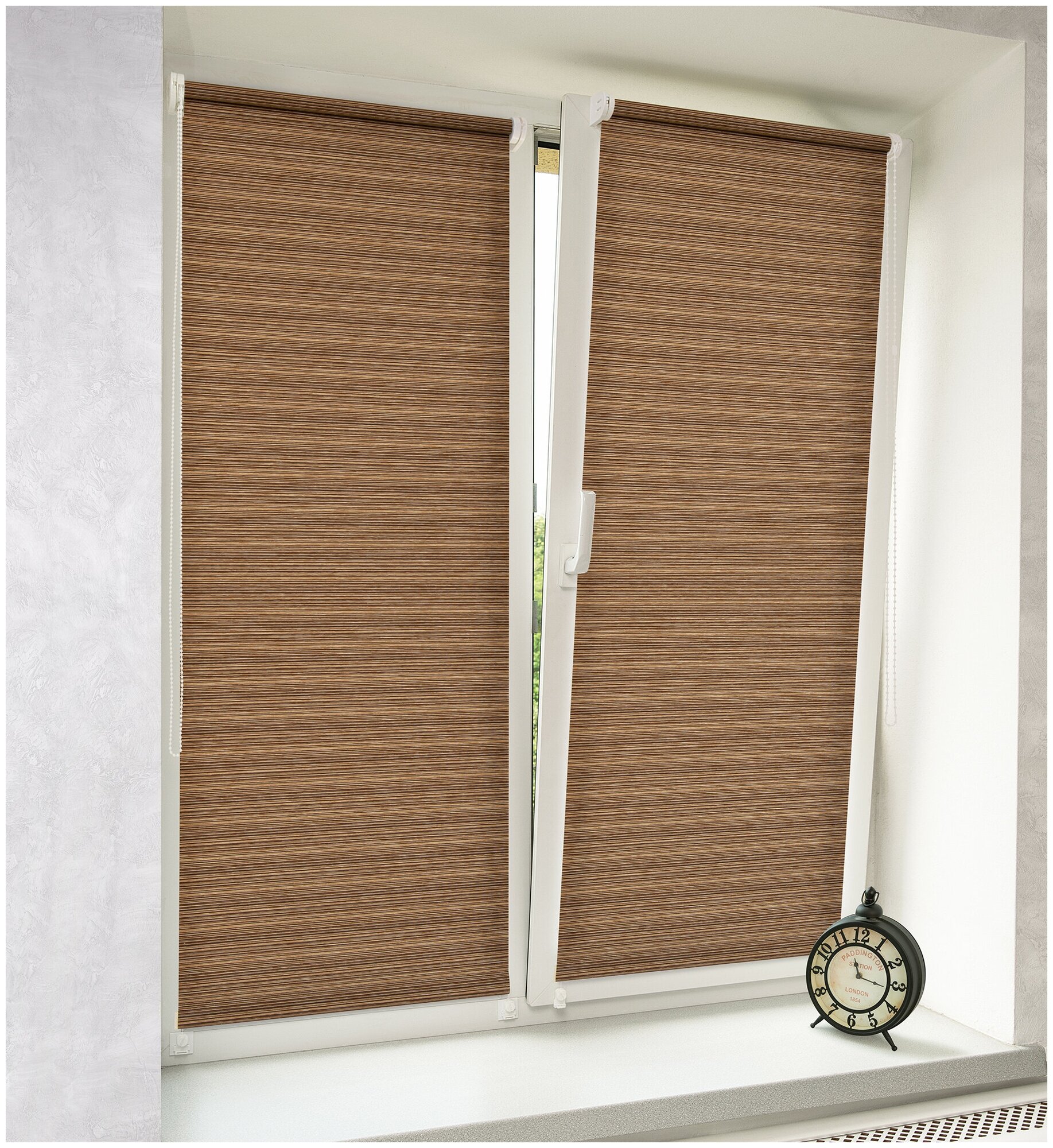 Наличие специальных зажимов обеспечивает быстрый и простой монтаж шторы без сверления отверстий в стеклопакете. Существует также возможность стандартного крепления с помощью саморезов. Дополнительно в комплект входит соединитель «защита детей».