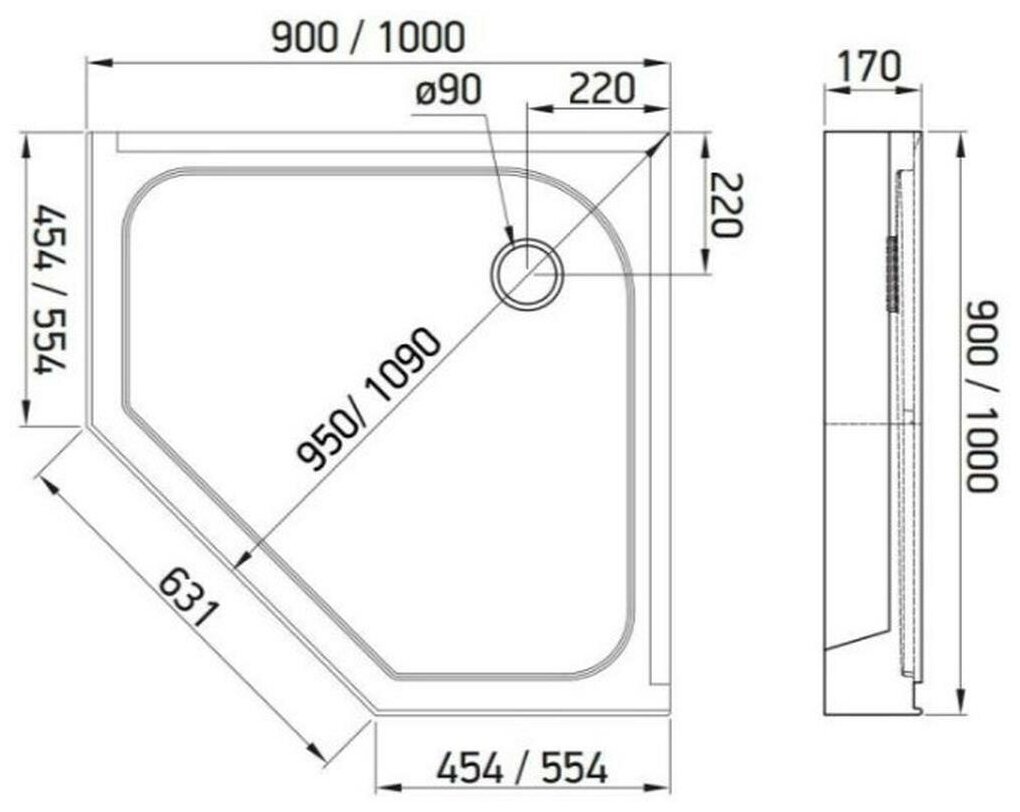 поддон alex baitler 100х100см АВ10017V-1 (размер: 100 x 100)