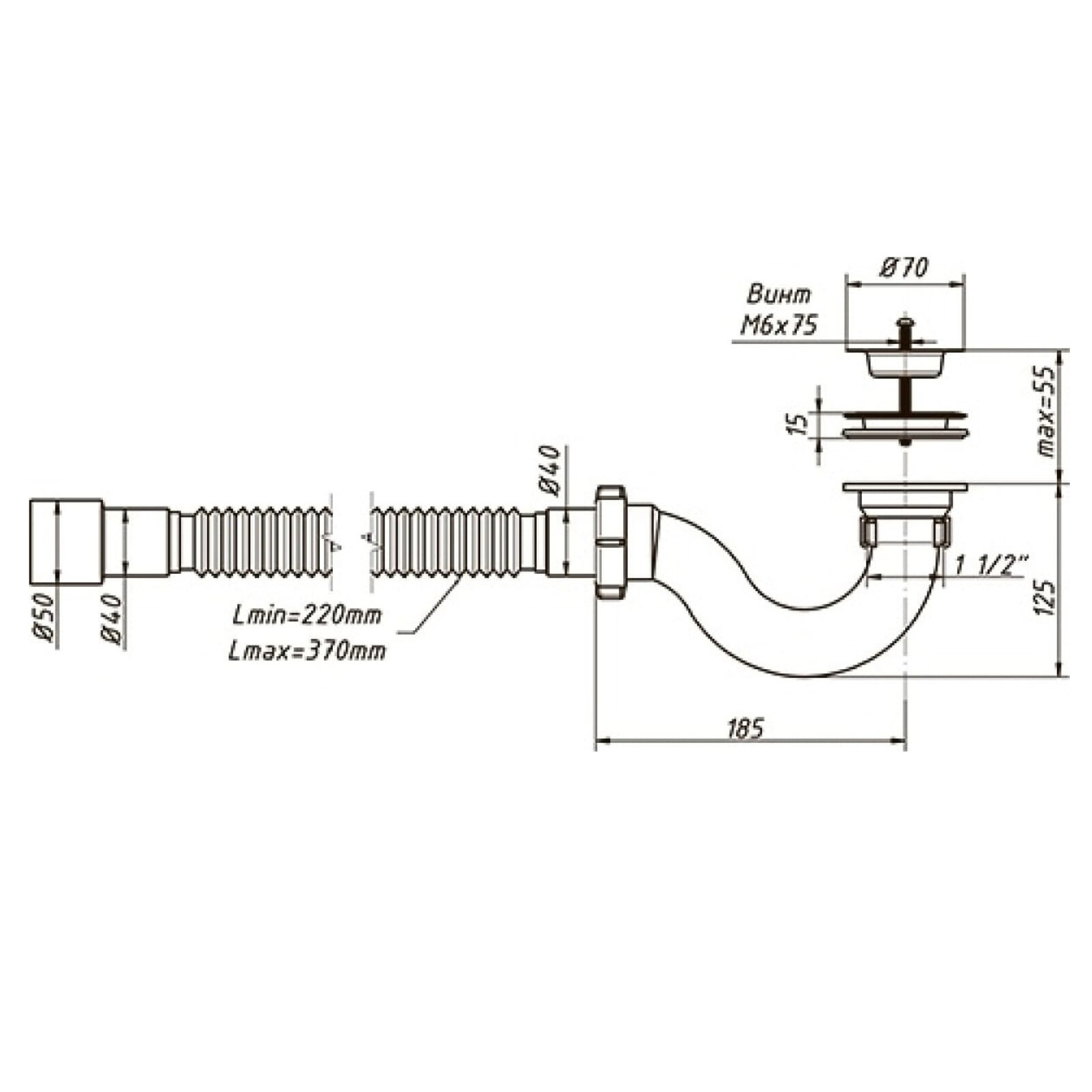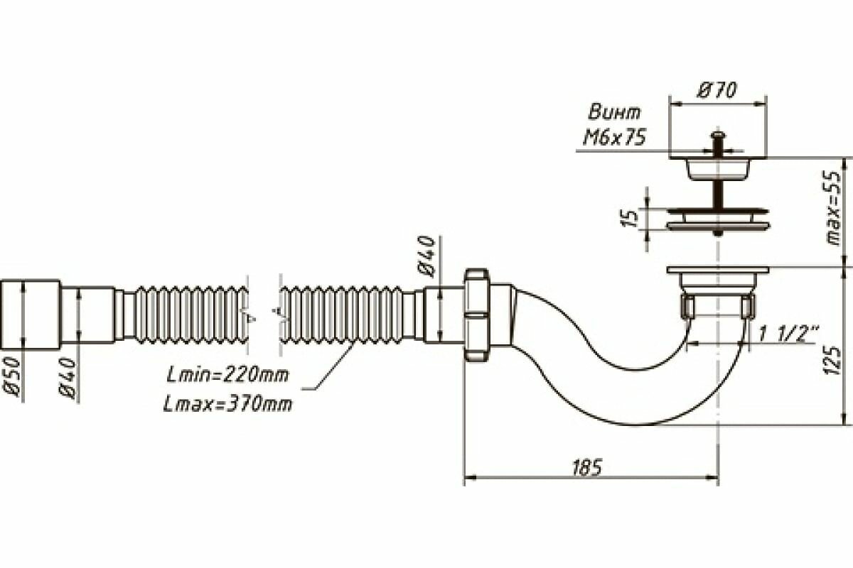- Длина гибкой трубы, мм: 370;