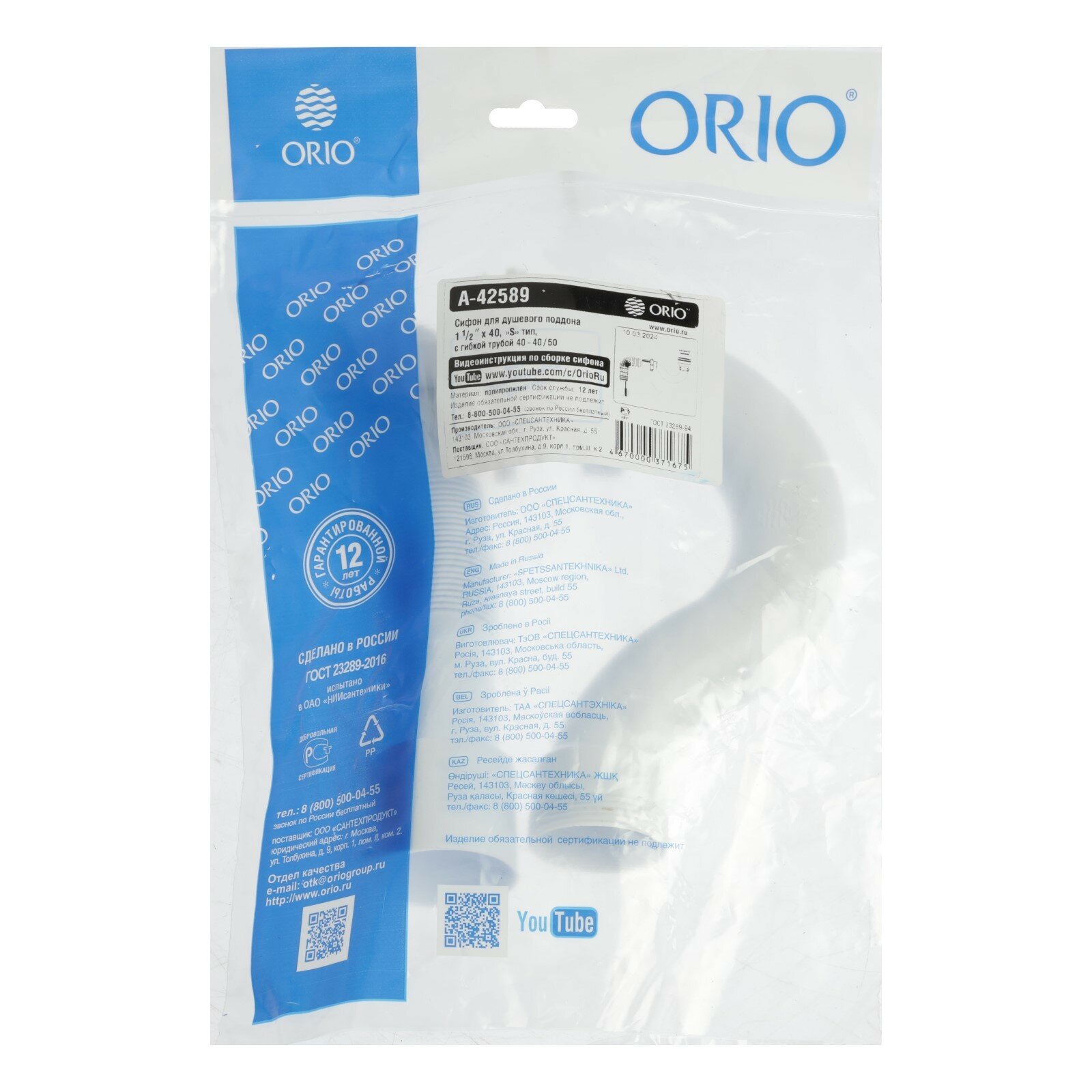 сифон для душевого поддона с г/т орио а-42589