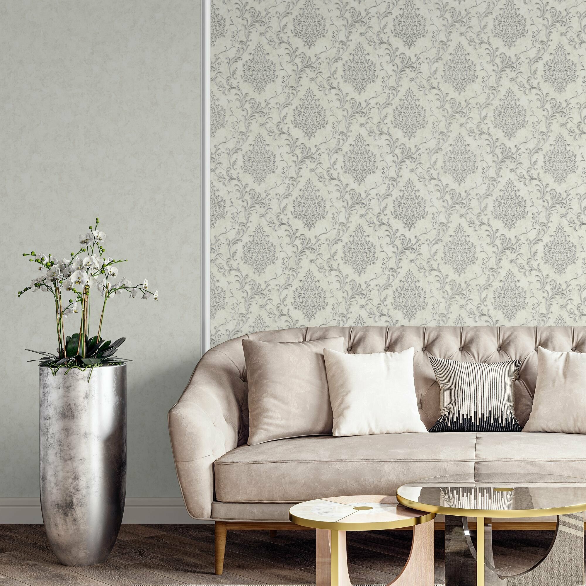 обои hc71781-14 home color diamond флизелин 1.06x1005м дамаск серый Diamond HC71781-14
