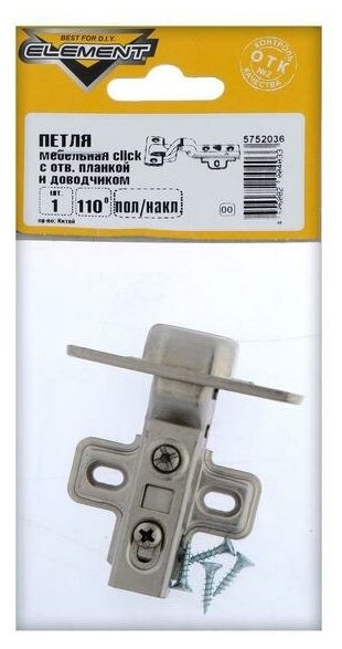 петля меб. click накл.с доводч.110* с отв.пл. белый цинк 1шт element 220670