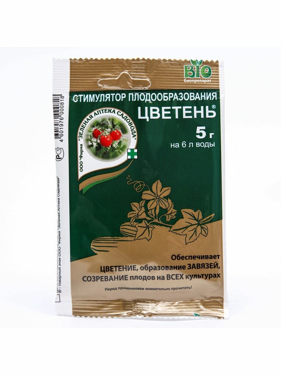 Кристаллический порошок, 0,9 г/кг натриевых солей гибберлиновых кислот + набор питательных элементов. Для обильного цветения, плодообразования. На томатах и огурцах, баклажанах, перце, фасоли, капусте, винограде.