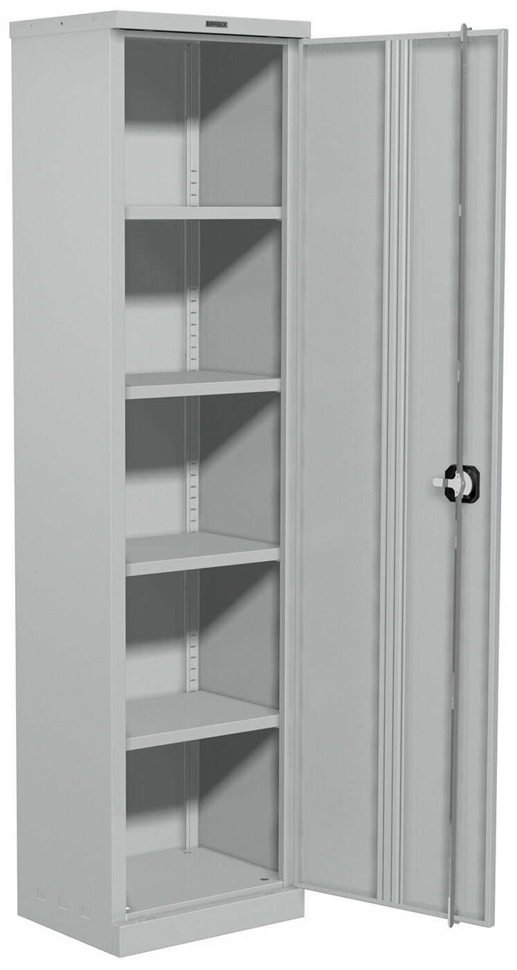 Стальной разборный архивный шкаф BRABIX предназначен для хранения большого количества документов в офисах и различных организациях. Идеален для хранения архивных папок. Вместимость шкафа не менее 60 папок шириной 75 мм. В комплекте 4 полки, всего 5 уровней хранения. Максимальная нагрузка на полку - 60 кг. Полка "cквозная", занимает всю ширину шкафа, разделяющей вертикальной перегородки нет. Шкафы комплектуются ключевыми замками - 2000 комбинаций. В комплекте 2 ключа. Оригинальная конструкция ригелей из нержавеющей стали и пластиковые втулки обеспечивают бесшумный ход дверей и надежное запирание шкафа. Поставляется в разобранном виде. Продукция марки Brabix выделяется лучшим соотношением цены и качества.