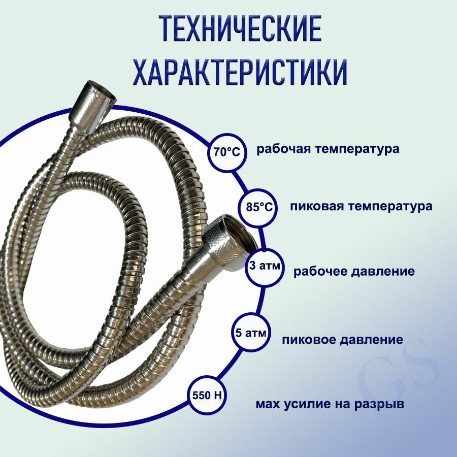 шланг для душа gshose high polished 2 м gla-14 металл