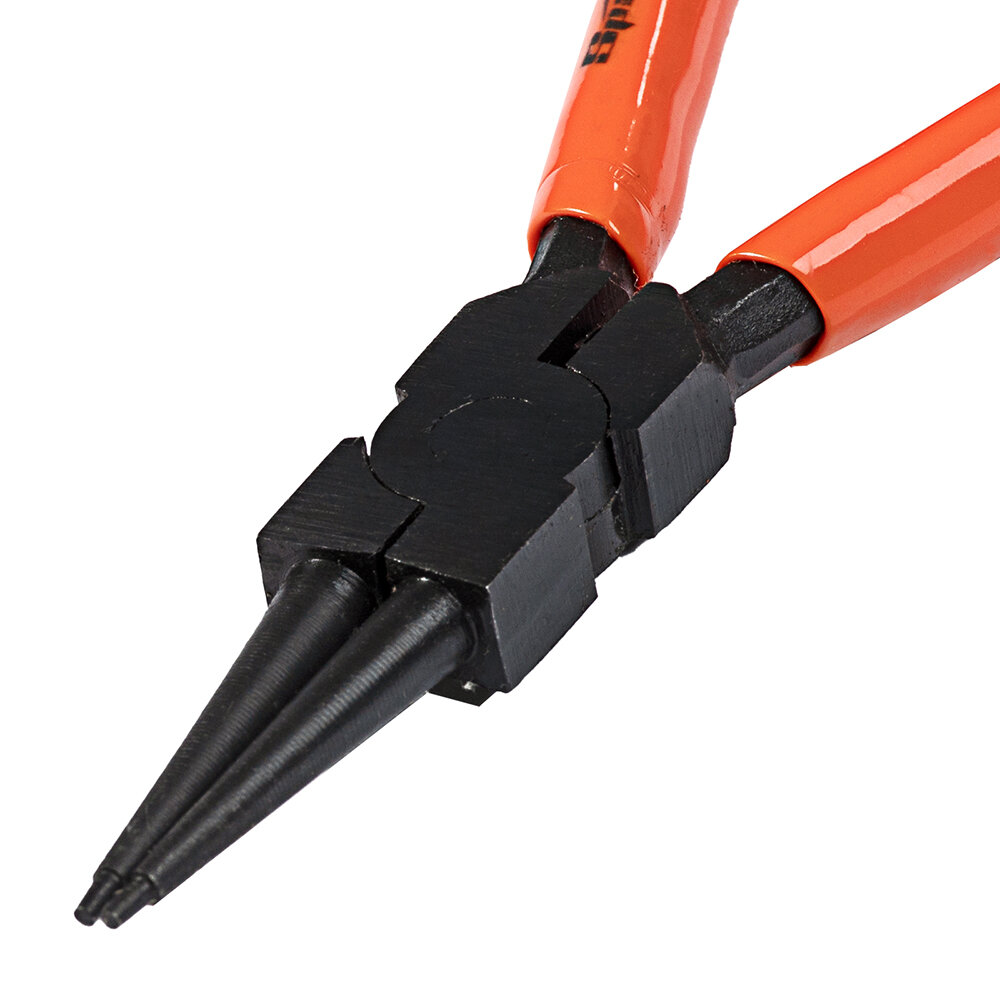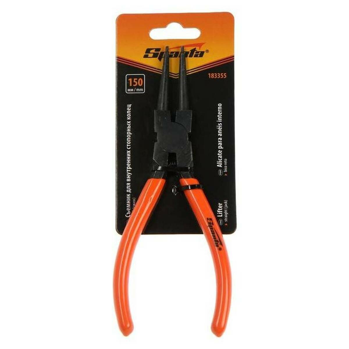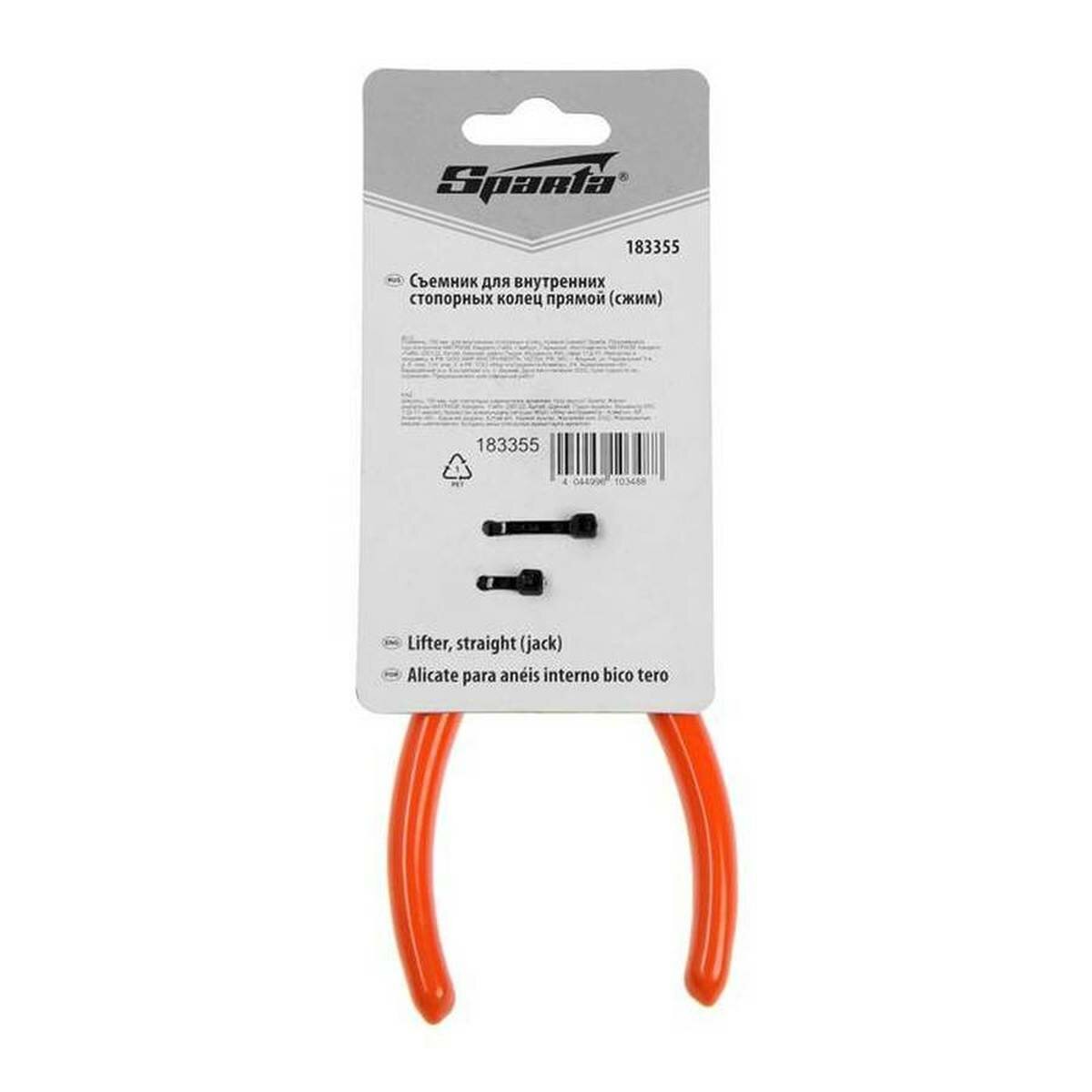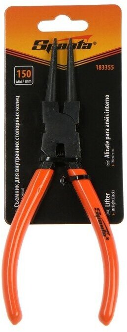 Съемник Sparta 183255 длиной 150 мм с изогнутыми губками используется для сжима внутренних стопорных колец с целью их монтажа и демонтажа. Наконечникам съемника придана особая форма, поэтому ушки кольца не соскальзывают с них. Съемник стопорных колец пригодится в ремонтной мастерской, на предприятии автосервиса, а также будет полезен в быту.