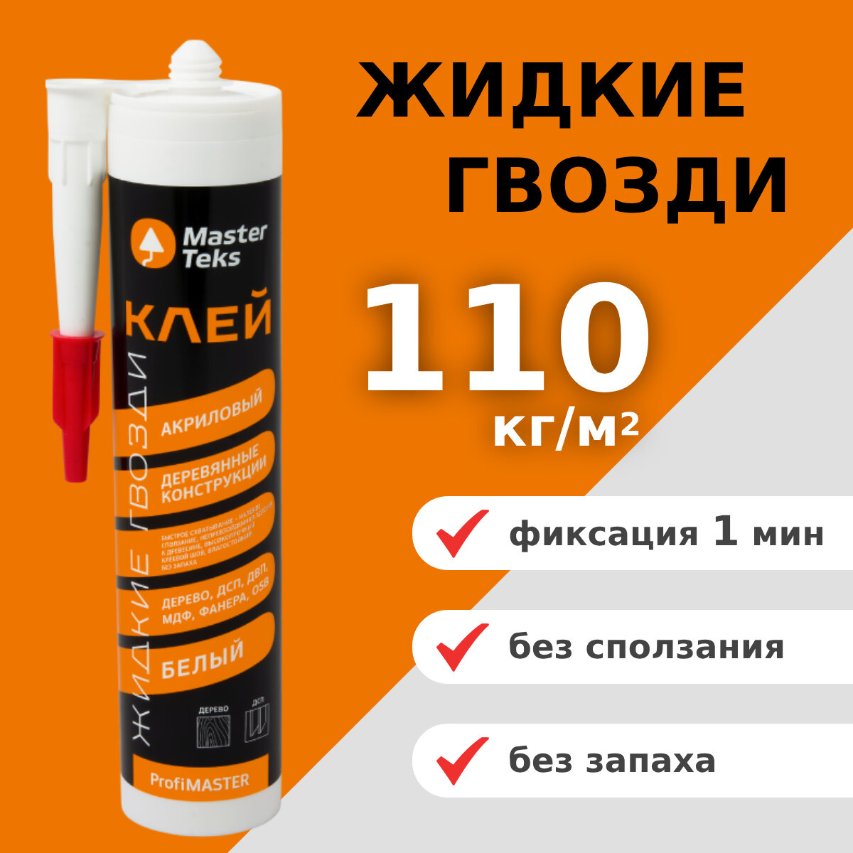 Монтажный клей «Жидкие гвозди» на основе новейших акриловых сополимеров, рекомендуется для приклеивания различных материалов на основе древесины при ремонте и отделочных работах. Уникальные полимеры, на основе которых создан продукт, гарантируют непревзойденную адгезионную и когезионную прочность склеивания внутри и снаружи помещения.преимущества:● Непревзойденная адгезия к древесине;
