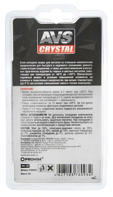 На сегодняшний день товар «клей холодная сварка avk-107 для металла 55гр. a78093s Avs» можно купить с кешбеком в 1 магазине: Яндекс.Маркет