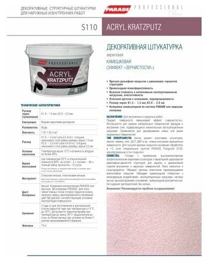 декор штукатурка камешковая parade professional acryl kratzputz s110 k20 15кг