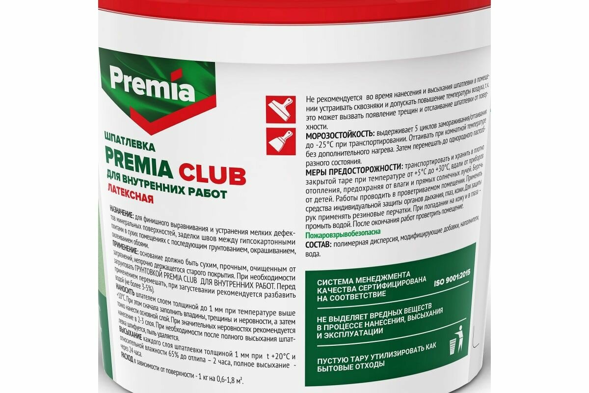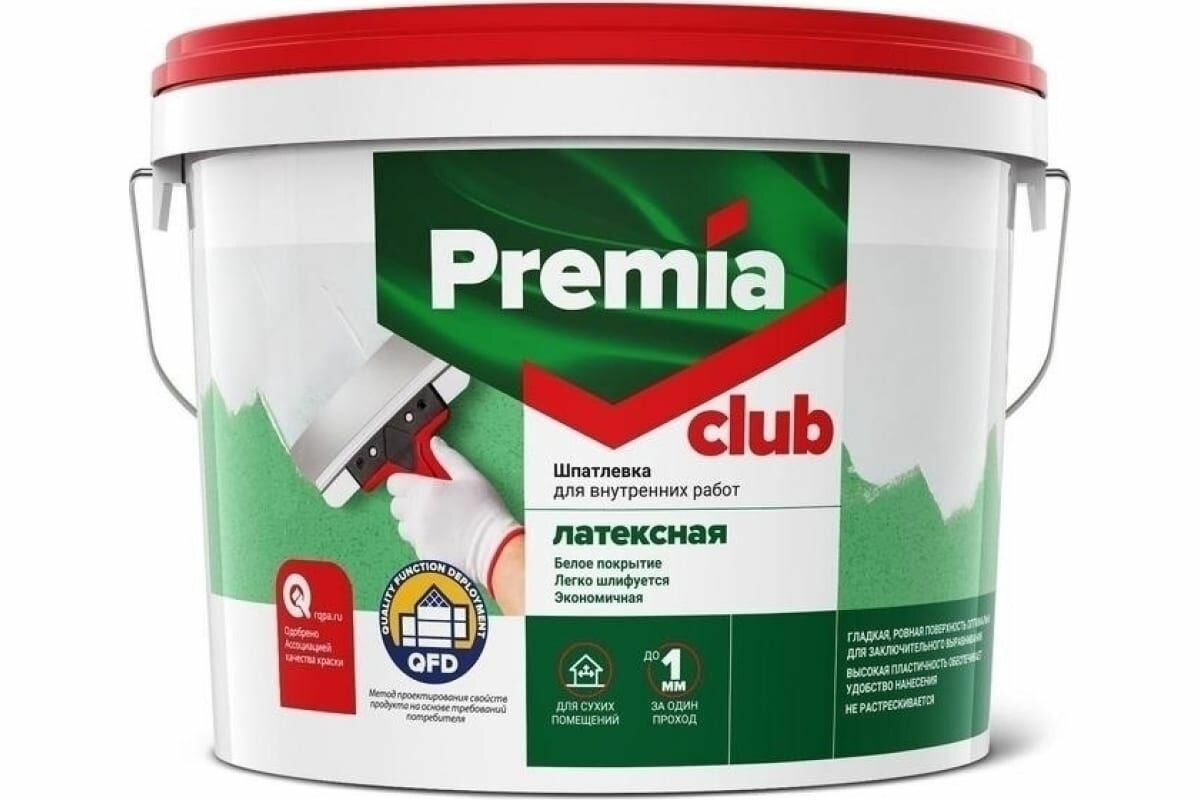 шпатлевка premia club выравнивающая для внутренних работ 8 кг ЯРКРАСКИ