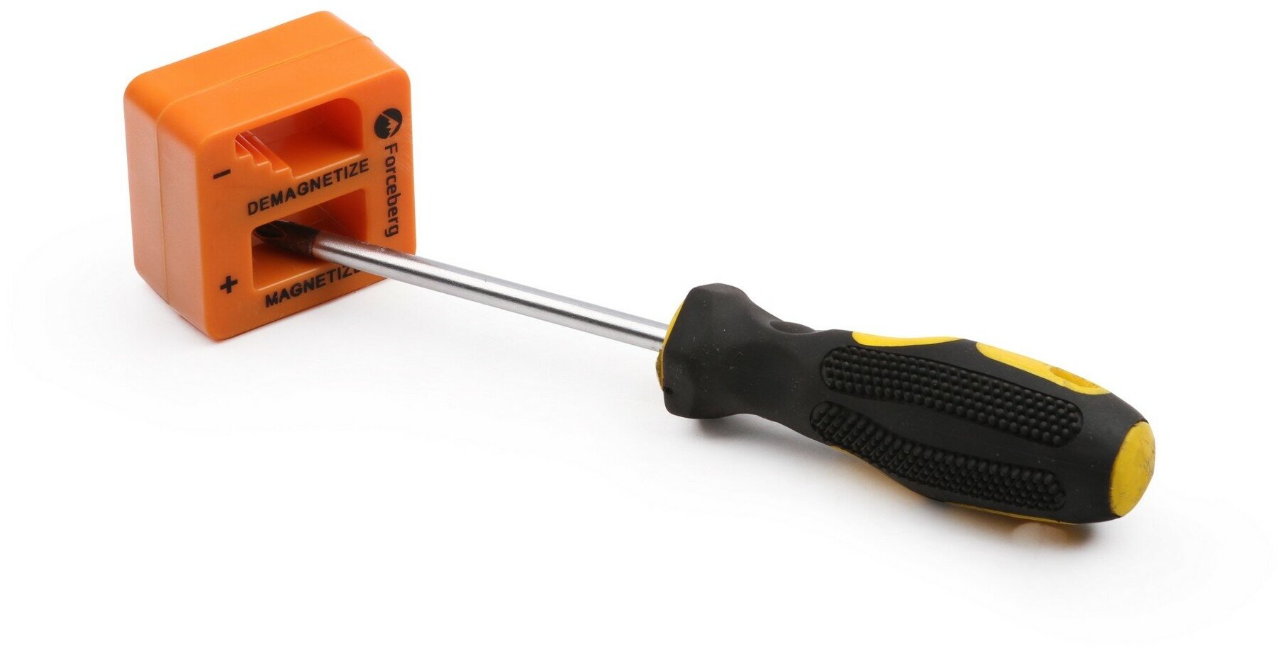 Устройство предназначено для намагничивания или размагничивания небольших инструментов - отверток, гаечных ключей, пинцетов, ножниц и тому подобного. Сильные магниты в нижней части устройства (magnetize) намагнитят предмет. Чтобы размагнитить инструмент, проведите им по верхней части с надписью demagnetize. Намагничиватель-размагничиватель имеет небольшой размер и вес, сделан из прочного пластика. Устройство надежно, долговечно и удобно в использовании.