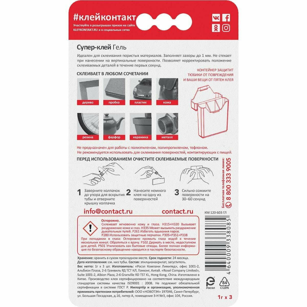супер-клей контакт гель 3х1г КМ 360 - Б01 ГЛ