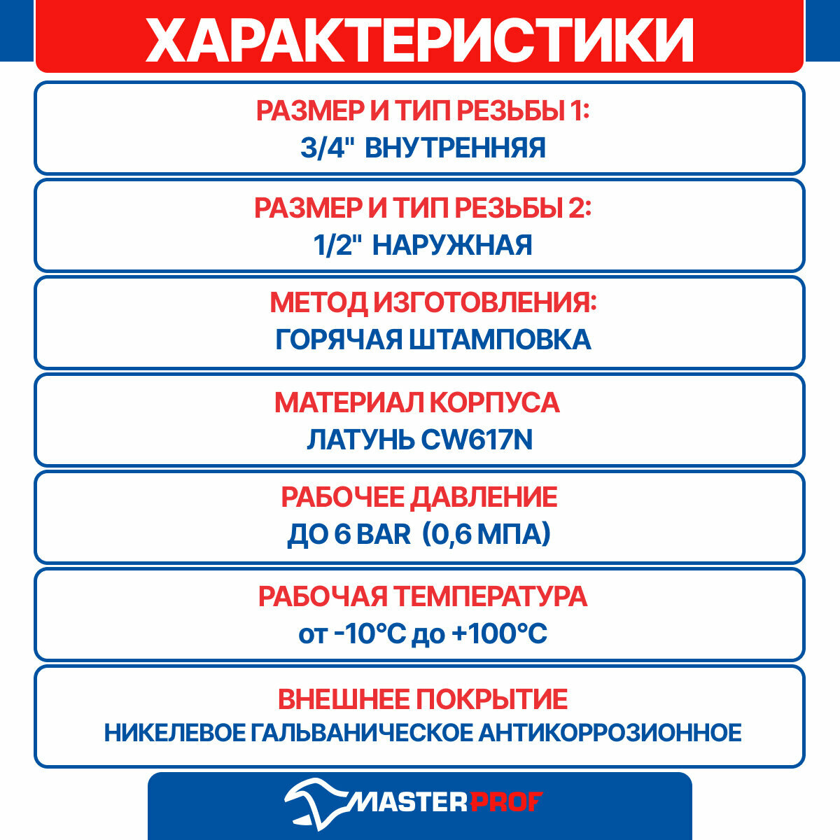 | Размеры резьб | 1/2-3/4 |