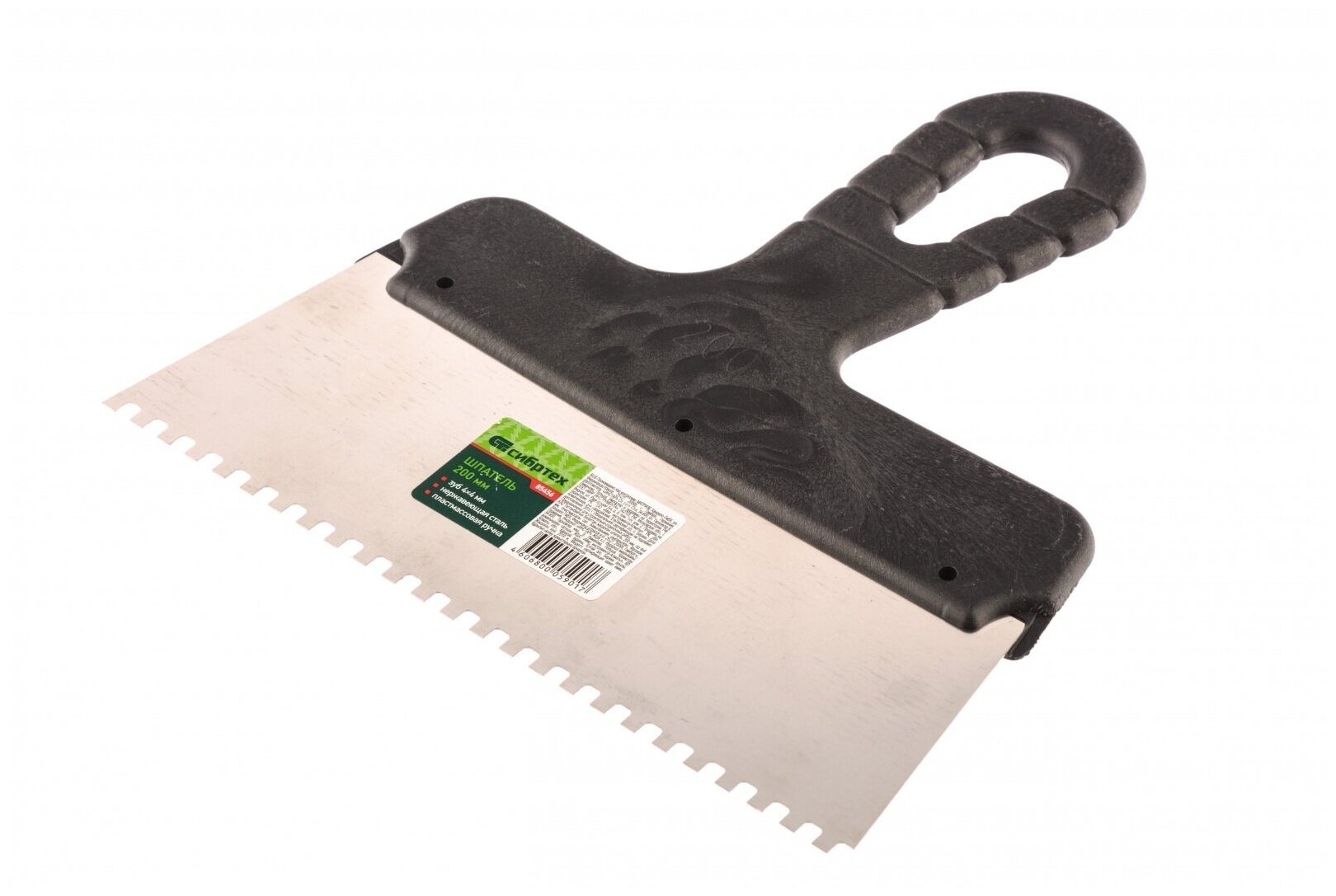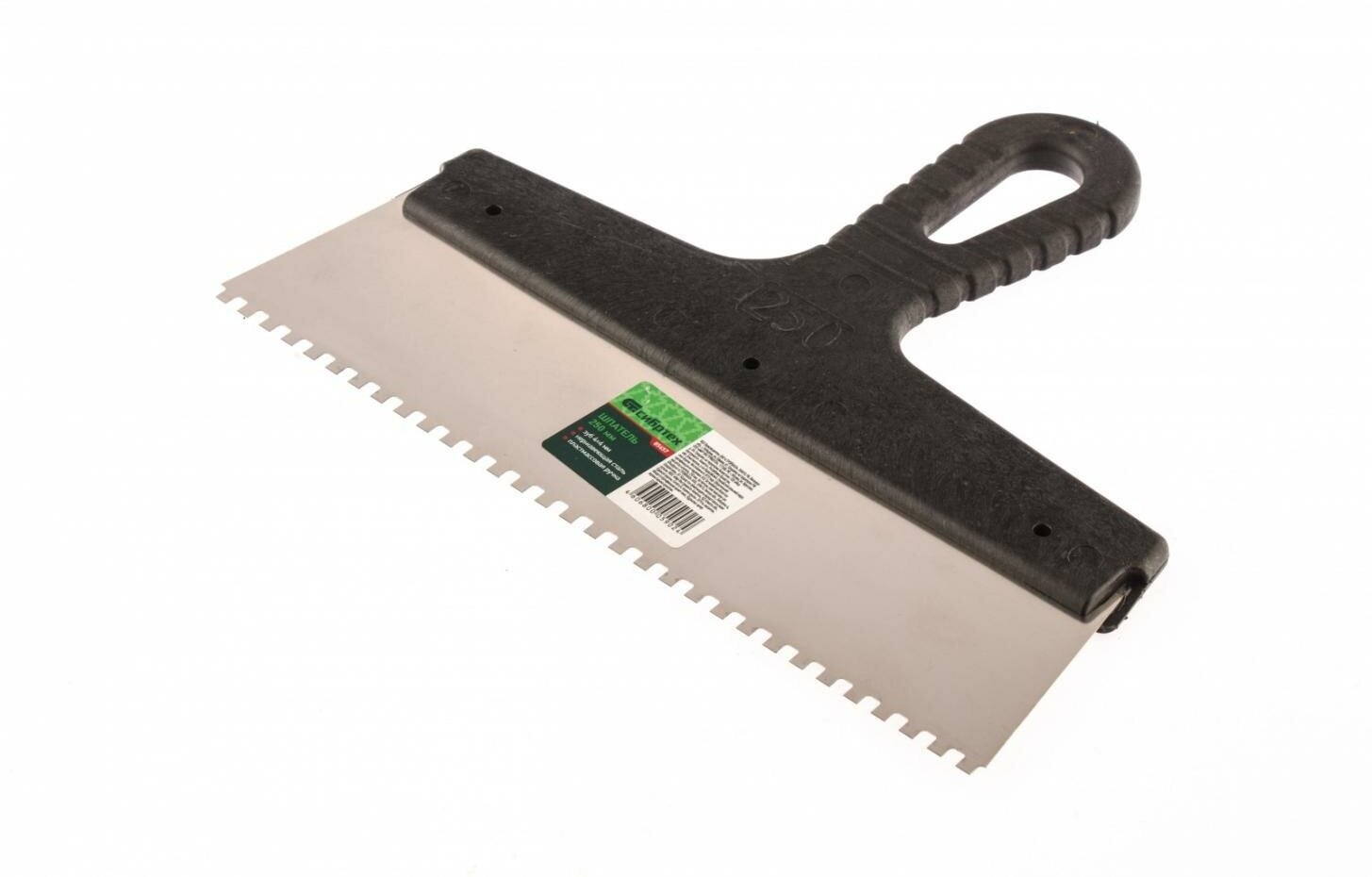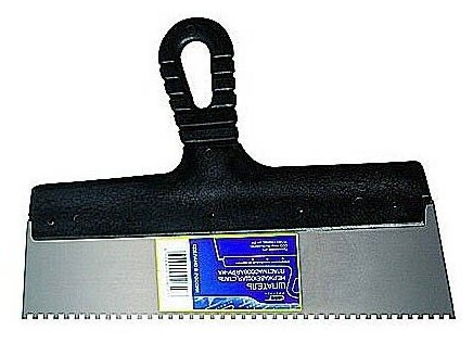 шпатель зубчатый 200мм зуб 4*4мм нерж. с пласт. ручкой сибртех 85456