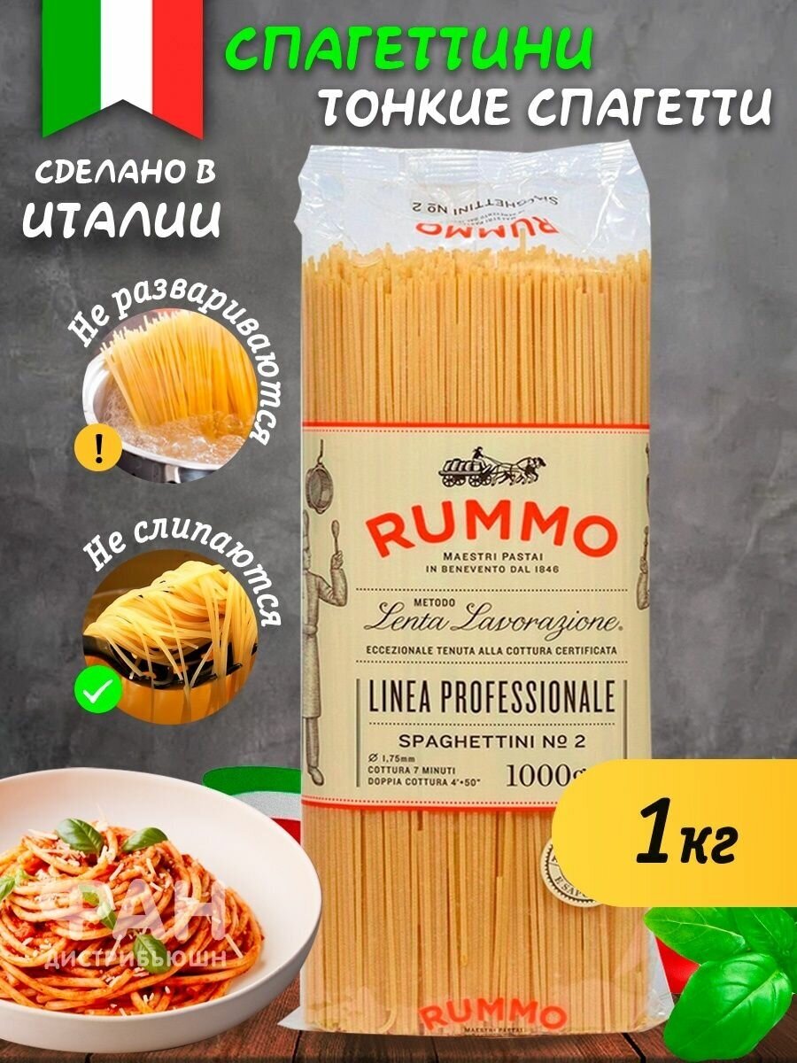 На сегодняшний день товар «Паста спагетти из твердых сортов пшеницы Rummo Италия 1кг Классические Спагеттини №2 1000 г (размер: тонкие)» можно купить с кешбеком в 1 магазине: Яндекс.Маркет
