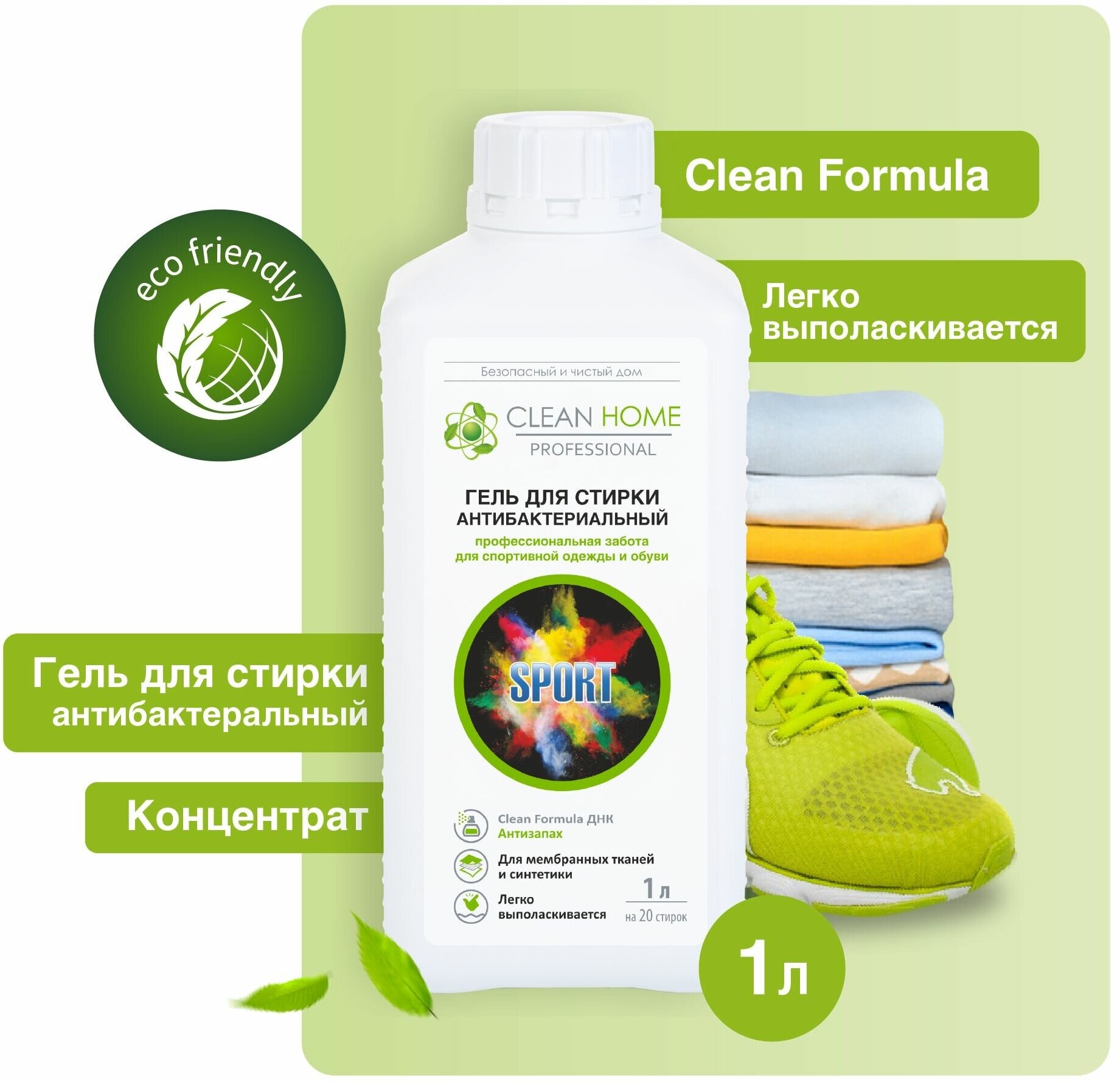 Гель для стирки спортивной одежды CLEAN HOME Гель для стирки антибактериальный 1 л