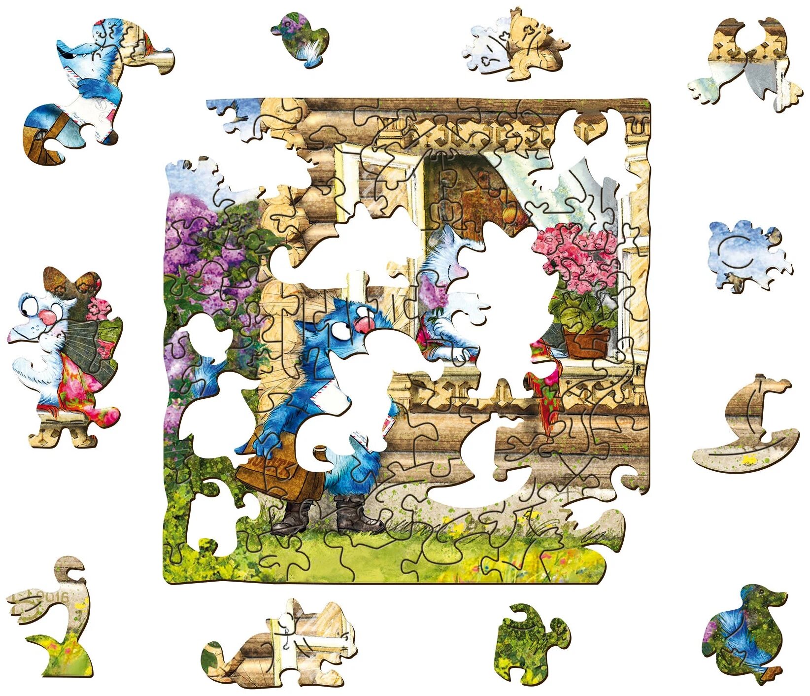 Фигурный деревянный пазл. Лето в Котофеевке Нескучные игры Синие коты - Лето в Котофеевке