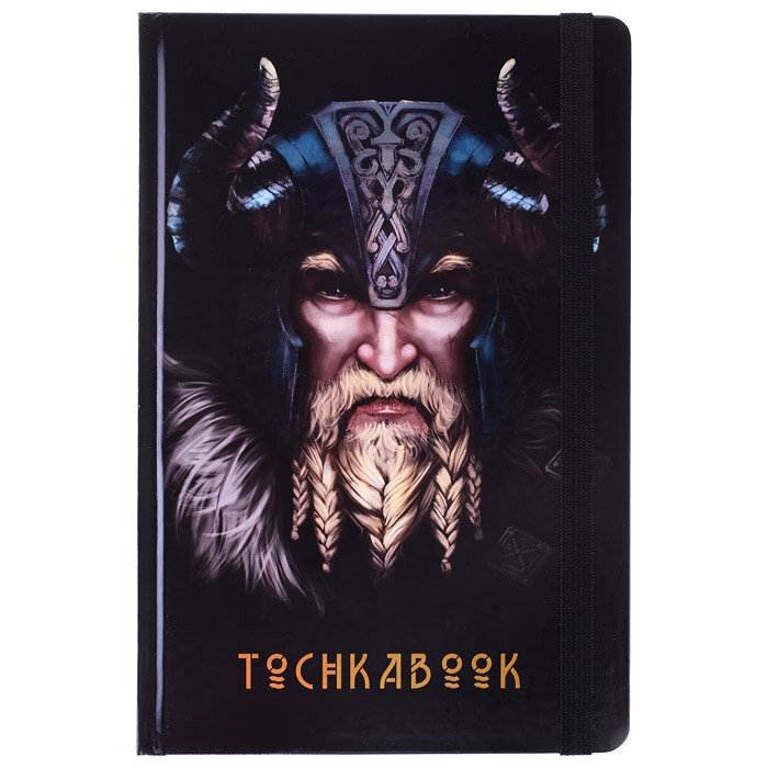 Точкабук с брутальным викингом можно рассматривать в качестве подарка для мужчины, начальника, делового партнёра, особенного клиента. Сдержанные цвета и тёмный фон придают обложке благородный вид. Блокнот покрыт фактурным лаком и фольгой, которую становится видно, когда на блокнот попадает световой блик. В точкабуке 72 белых листа в мелкую серую точку. Такой блокнот подойдёт для деловых и творческих записей.